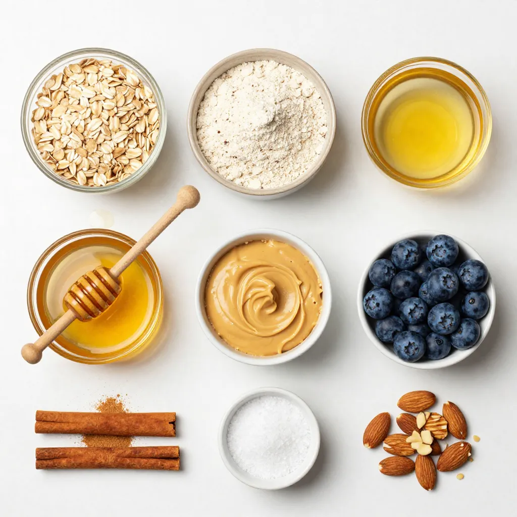 To make your blueberry almond oat bars, gather these simple ingredients: