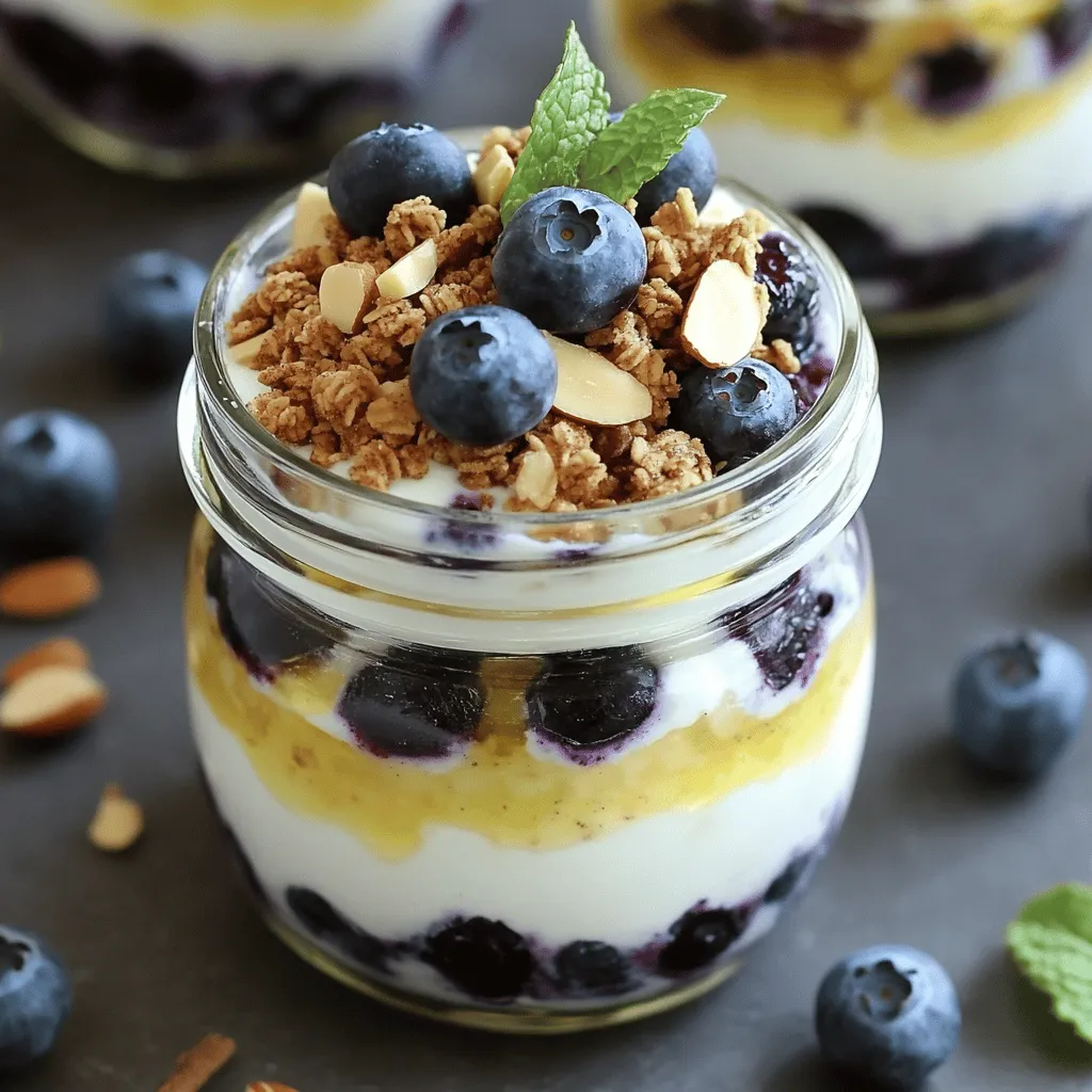 Greek yogurt is high in protein, which helps keep you full. It also has probiotics that aid digestion. Blueberries are packed with vitamins and antioxidants. They are great for your heart and brain health. Granola adds fiber, which is good for your gut. If you add almond slivers, you get healthy fats and protein too. Mint leaves not only add color but also fresh flavor. This parfait is a tasty way to enjoy healthy ingredients.