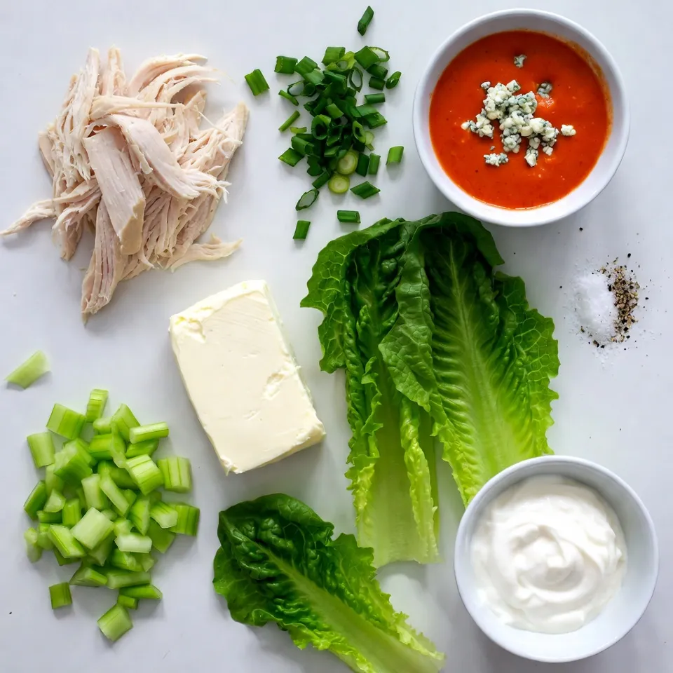 The main ingredients for Buffalo Chicken Lettuce Wraps focus on flavor and texture. You need chicken, buffalo sauce, cream cheese, and Greek yogurt. The chicken gives a great base. The buffalo sauce adds heat. Cream cheese and Greek yogurt bring creaminess.