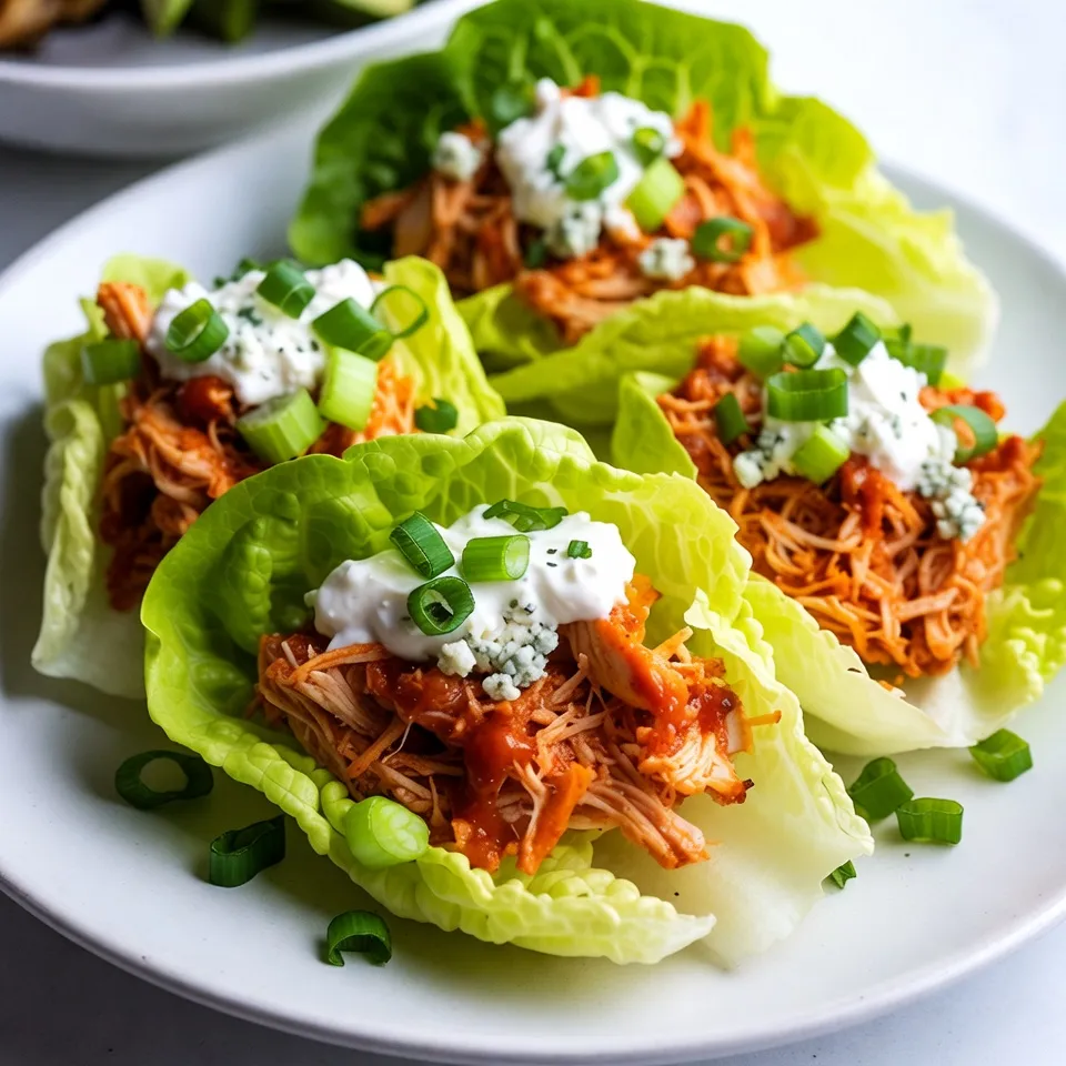 A spicy and creamy chicken filling wrapped in crisp lettuce leaves, perfect for a healthy appetizer or main dish.