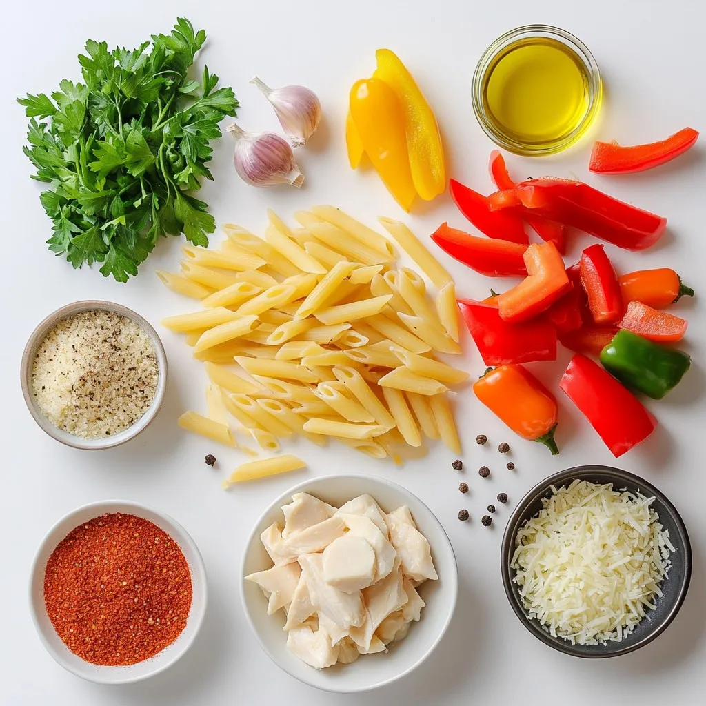 The main ingredients in Cajun Chicken Alfredo Bake create a rich and creamy dish. The chicken gives it protein and heartiness. The penne pasta makes it filling and fun to eat. Cajun seasoning adds a spicy kick, while garlic brings a depth of flavor. Heavy cream and cheese create a smooth and rich sauce.