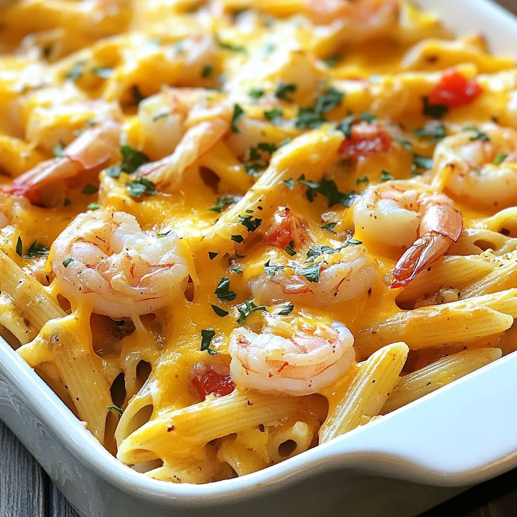 - 8 ounces penne pasta - 1 pound shrimp, peeled and deveined - 1 tablespoon Cajun seasoning - 1 tablespoon olive oil - 1 small onion, diced - 2 cloves garlic, minced - 1 bell pepper, diced (red or green) - 1 cup heavy cream - 1 cup shredded cheddar cheese - 1 cup diced tomatoes (canned or fresh) - 1/2 cup grated Parmesan cheese - Salt and pepper to taste - Fresh parsley, chopped (for garnish) To make a great Cajun shrimp pasta bake, you need a few key ingredients. Start with penne pasta, which holds the sauce well. You’ll need a pound of shrimp. Make sure they are peeled and deveined for easy cooking. Cajun seasoning brings the heat and flavor. I like to use one tablespoon, but you can adjust it to your taste. A tablespoon of olive oil helps sauté the veggies. You need one small onion, diced finely, to add sweetness. Next, gather some extra ingredients. Minced garlic adds a rich taste. A bell pepper, either red or green, adds crunch and color. The dish needs creaminess, so one cup of heavy cream is perfect. Cheddar cheese is a must for that gooey texture. Use one cup, shredded. For added flavor, include one cup of diced tomatoes. You can use fresh or canned, depending on what you have. For seasoning and topping, you'll want half a cup of grated Parmesan cheese. Salt and pepper enhance all the flavors. Finally, chop fresh parsley for a beautiful finish. With these ingredients, you can create a hearty and flavorful Cajun shrimp pasta bake that everyone will love! {{ingredient_image_1}} - Preheat your oven to 375°F (190°C). - Cook 8 ounces of penne pasta until al dente, then set aside. - In a large skillet, heat 1 tablespoon of olive oil over medium heat. - Add 1 small diced onion and 1 diced bell pepper. Sauté them until soft, about 5 minutes. - Add 2 minced garlic cloves and cook for 1 minute until fragrant. - Season 1 pound of shrimp with 1 tablespoon of Cajun seasoning, salt, and pepper. Add the shrimp to the skillet and cook until they turn pink, about 3-4 minutes. - Stir in 1 cup of heavy cream and 1 cup of diced tomatoes. Simmer for 2-3 minutes to blend the flavors. - Gently fold in the cooked penne pasta and half of 1 cup of shredded cheddar cheese. - Transfer the mixture to a greased baking dish and spread it evenly. Top with the remaining cheddar cheese and sprinkle with 1/2 cup of grated Parmesan cheese. - Bake the dish for 20-25 minutes until the top is golden and bubbly. - Allow it to cool for a few minutes before garnishing with chopped parsley. To get the best texture, cook the penne pasta al dente. This means it should be firm but not hard. This helps it hold up well during baking. Overcooking shrimp can lead to a rubbery texture. Cook the shrimp just until they turn pink and opaque. This keeps them tender and juicy. Cajun seasoning can vary in heat. Adjust it to match your taste. If you want more depth, add a splash of Worcestershire sauce. This adds a savory note that complements the dish well. Using high-quality cheese makes a big difference. It melts better and gives a richer flavor. After baking, let the dish sit for a few minutes. This helps it set and makes it easier to serve. Pro Tips Perfectly Cooked Shrimp: Be careful not to overcook the shrimp; they should only be cooked until they turn pink and opaque, about 3-4 minutes. Cheese Selection: For a more complex flavor, try mixing different types of cheese, such as pepper jack or gouda, with the cheddar. Herb Infusion: Enhance the dish by adding fresh herbs like thyme or basil for a pop of flavor and freshness. Make Ahead: This pasta bake can be prepared in advance and stored in the fridge, making it a great option for meal prep or entertaining. {{image_2}} You can switch up the seafood in this dish. If you don't want shrimp, use scallops or lobster. Both options add a sweet, rich flavor. For an extra special touch, sauté some crab meat. It gives a luxurious feel to the bake. Adding vegetables can boost the dish's health and flavor. Spinach or zucchini mix in well and add color. You can also toss in some broccoli. It not only adds nutrition but also makes the dish vibrant and appealing. If you need a gluten-free meal, choose gluten-free pasta. It works just as well in this recipe. For those who are dairy-free, swap out heavy cream for plant-based cream. This keeps the dish creamy without dairy. To keep your Cajun shrimp pasta bake fresh, store it in an airtight container in your refrigerator. It’s best to eat it within 3-4 days for the best flavor. This dish tastes great, but it can lose its charm if left too long. You can freeze the baked dish for up to 2 months. Make sure to let it cool first. To reheat, thaw it overnight in your fridge before cooking. This helps keep the texture just right. For the best results, reheat your pasta bake in the oven. It warms evenly and keeps the top crispy. If you need a quicker option, use the microwave. Just add a little moisture, like a splash of water, to keep it from drying out. Enjoy your delicious meal again! Yes, just thaw and dry them before cooking. Frozen shrimp works well. It saves time and still tastes great. Just remember to pat them dry. This step keeps extra water out of your dish. Increase Cajun seasoning or add hot sauce. Adjust the spice to fit your taste. More seasoning gives a kick that many love. Hot sauce can add flavor and heat too. Add a little at a time, so it doesn’t overwhelm the dish. Yes, assemble and refrigerate before baking. This makes it easy for busy days. Just mix everything and store it in the fridge. When you're ready, pop it in the oven. It saves time and still tastes fresh. Serve with a side salad or garlic bread for a complete meal. A crisp salad adds freshness. Garlic bread brings warmth and heartiness to the table. Together, they round out the dish nicely. Enjoy a full-flavored meal that satisfies. This Cajun shrimp pasta bake blends rich flavors with easy steps. You learned how to cook pasta, sauté shrimp, and layer tasty ingred