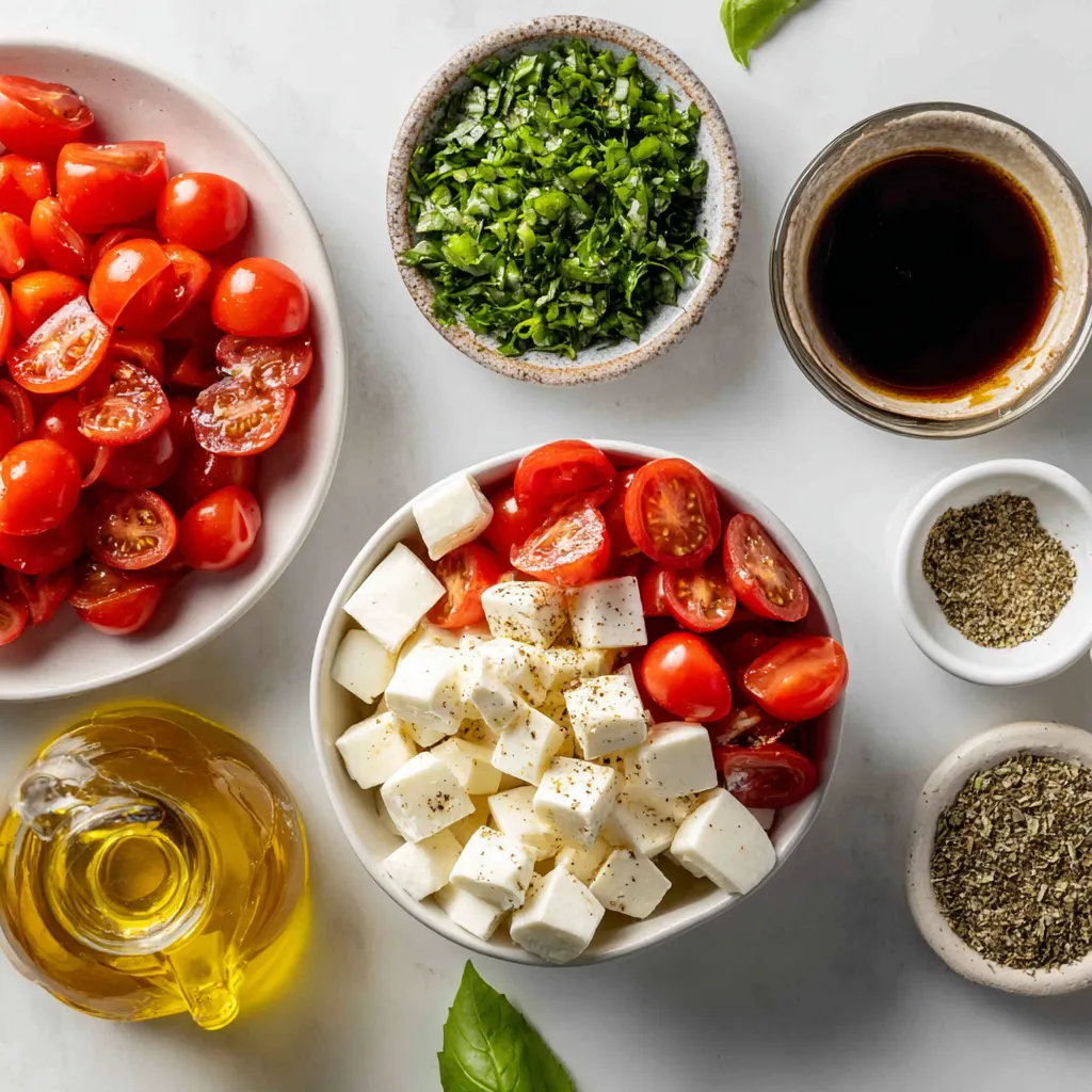 You can swap fresh mozzarella for shredded cheese if needed. Use any cheese you like. For cherry tomatoes, grape tomatoes work too. If you don’t have fresh basil, dried basil is a good choice. Garlic powder can replace fresh garlic in a pinch. Lastly, balsamic vinegar can work instead of balsamic glaze.