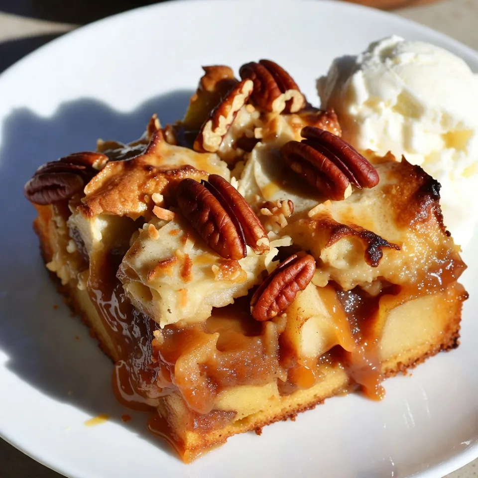 A delicious and easy dessert featuring layers of apple pie filling, caramel, and cake mix, topped with a caramelized crust.