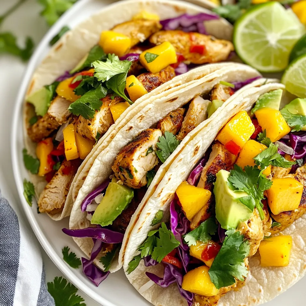 Spicy and flavorful tacos filled with marinated jerk chicken, fresh mango, avocado, and vibrant cabbage.