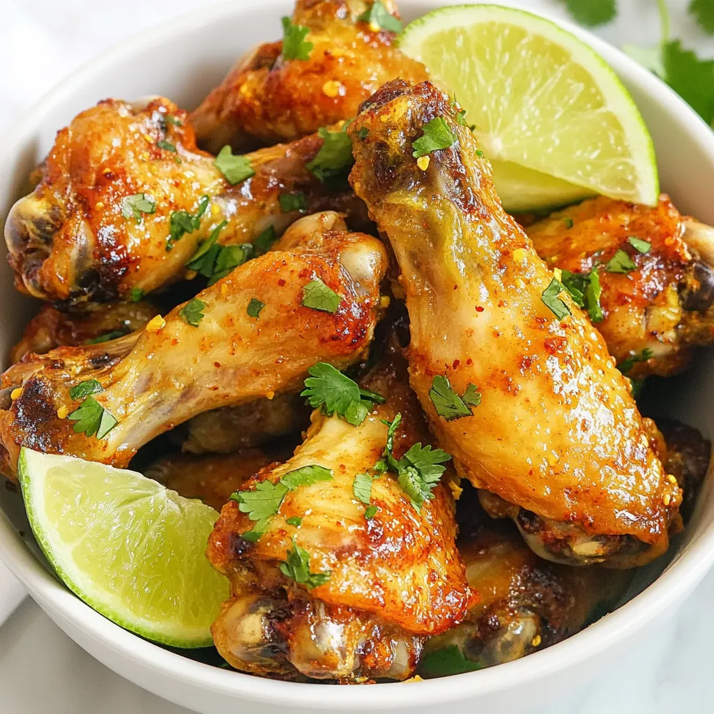 Spicy and tangy chicken wings marinated in a flavorful chili lime mixture, baked to crispy perfection.