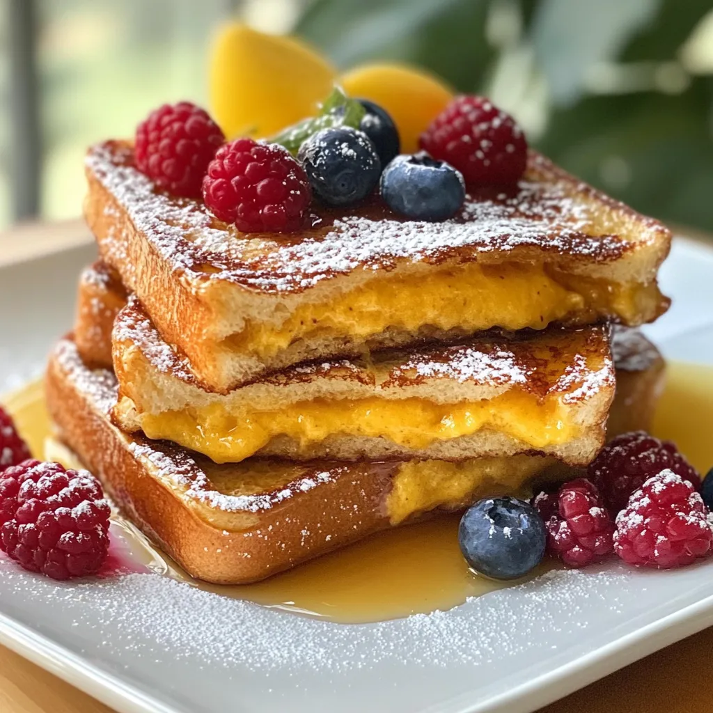 Serve your French toast with crispy bacon or sausage for a hearty meal. They pair well and balance the sweet flavors. You can also get creative with how you plate it. Try stacking the French toast high and dusting with powdered sugar. Add fresh berries on top for color. Drizzle warm maple syrup for an added touch of sweetness. This makes the dish look as good as it tastes!