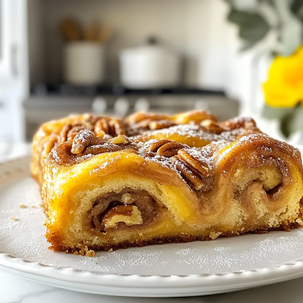 - Delicious Flavor Combination: This cake combines the warm, comforting flavors of cinnamon and sugar, reminiscent of classic cinnamon rolls.