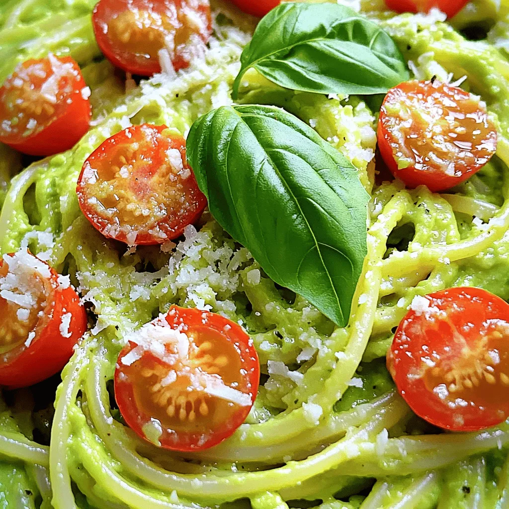 Start with plenty of salted water for boiling. This adds flavor to your pasta. Cook the pasta until it’s al dente. This means it should still have a little bite. Reserve some pasta water before draining. This water helps adjust sauce thickness later. Toss the pasta quickly with the avocado sauce for even coating. Enjoy the creamy flavor right away for the best taste!
