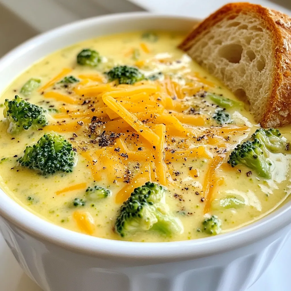 A rich and creamy soup made with broccoli, cheddar cheese, and vegetables.