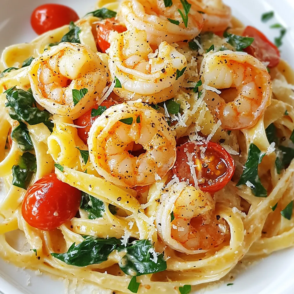 You can swap some ingredients if needed. If you can’t find fettuccine, try penne or spaghetti. For shrimp, chicken or tofu works well. If you want a lighter dish, use half-and-half instead of heavy cream. You can also use vegetable broth for a vegetarian option. If you don’t have cherry tomatoes, regular diced tomatoes will do.