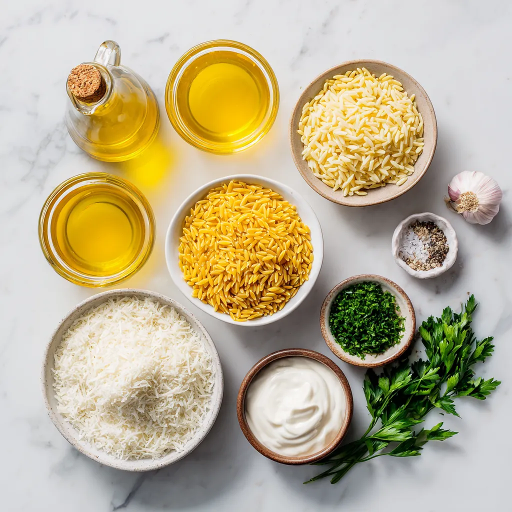 Here’s what you need for Creamy Garlic Parmesan Orzo:
