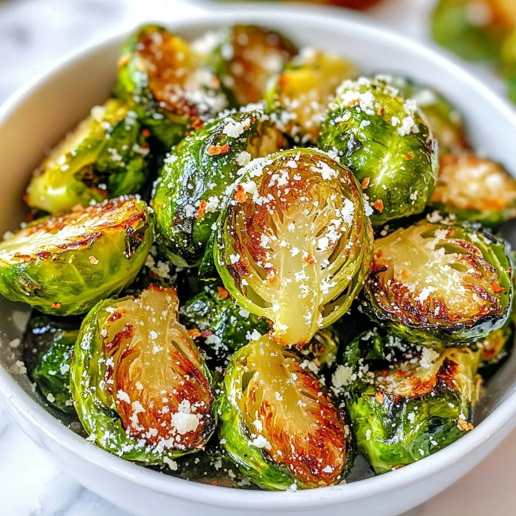 Deliciously crispy Brussels sprouts made in an air fryer, seasoned to perfection.