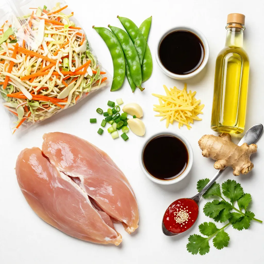 The main ingredients give this dish its heartiness. Ground chicken or turkey serves as the protein base. You can choose turkey for a lighter meal. The coleslaw mix adds crunch and color. Snap peas bring a sweet and fresh flavor. Green onions add a mild, oniony bite.