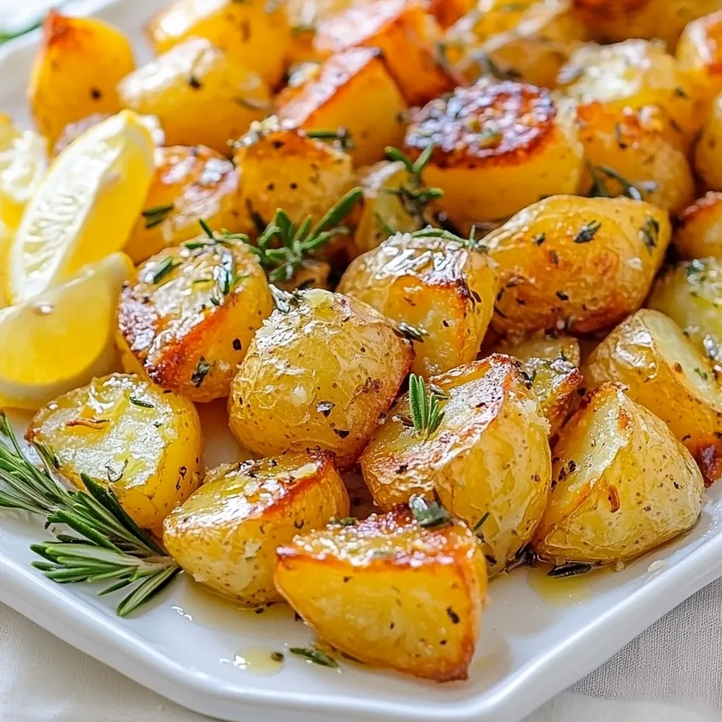 Transfer the roasted potatoes to a beautiful serving platter, garnishing with extra chopped herbs and a sprinkle of sea salt for extra flavor and visual appeal. Serve with lemon wedges on the side for an extra zesty kick!