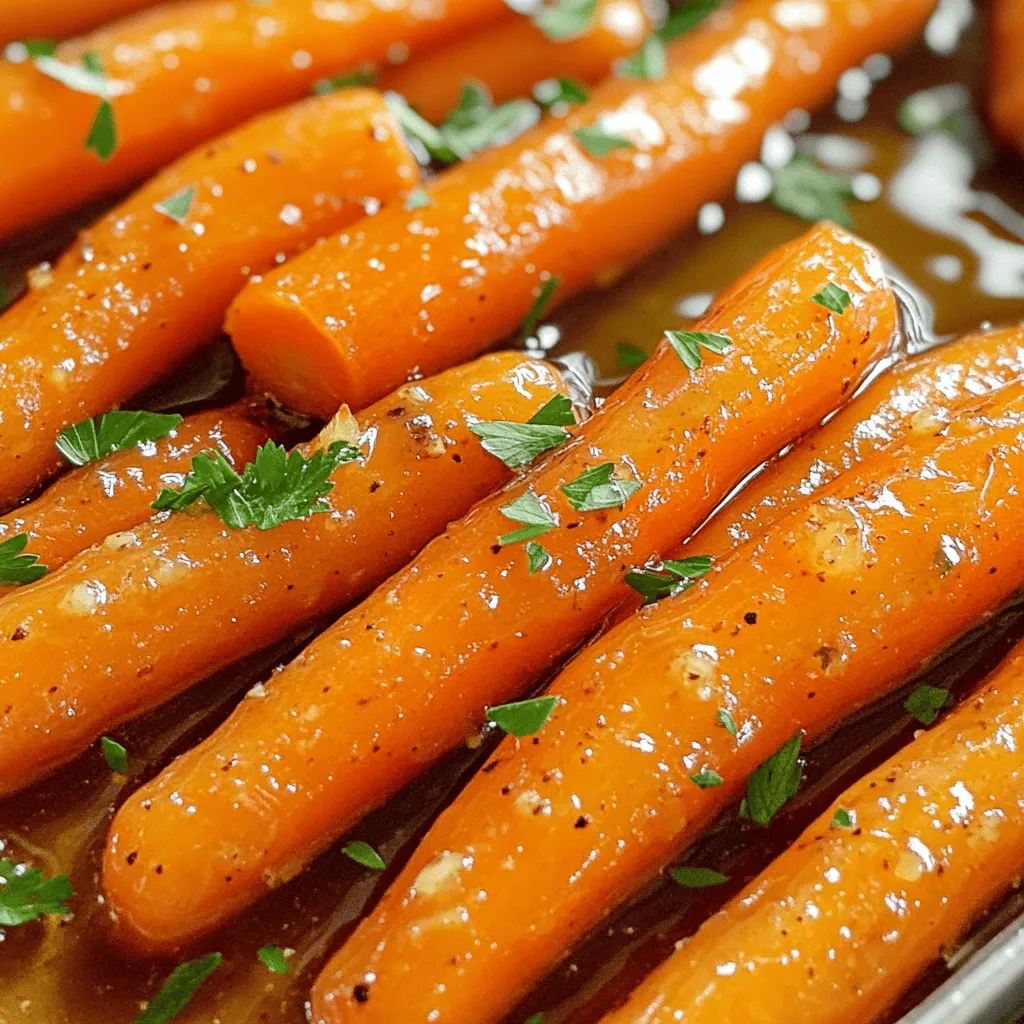 To make honey garlic glazed carrots, you need a few simple items. Here’s what you will use: - 1 lb baby carrots, peeled - 3 tablespoons honey - 2 tablespoons unsalted butter - 2 cloves garlic, minced - 1 tablespoon soy sauce - Salt, to taste - Freshly ground black pepper, to taste - 1 tablespoon fresh parsley, chopped (for garnish) These ingredients blend together to create a sweet and savory dish. The baby carrots shine in this recipe. Their natural sweetness pairs well with the honey and garlic. Using unsalted butter gives you control over the saltiness. Garlic adds a rich flavor that really brings the dish alive. The soy sauce adds depth and umami, making the glaze irresistible. When choosing honey, opt for raw or local varieties for the best flavor. Fresh parsley not only adds color but also a burst of freshness. You will enjoy how these ingredients come together to make a tasty side dish! - Wash and peel the baby carrots. - If you use larger carrots, slice them into even-sized sticks. - First, melt the butter in a large skillet over medium heat. - Add minced garlic to the melted butter and sauté for about 1 minute. You want it fragrant but not browned. - Next, add the peeled carrots to the skillet. Stir them to coat in the garlic butter. Cook for about 5 minutes, stirring occasionally. - In a small bowl, mix honey and soy sauce. Pour this mixture over the carrots and stir well. - Continue cooking the carrots for another 10 to 12 minutes. Stir them often until they're tender and glazed. If the glaze gets too thick, just add a splash of water to loosen it. - Season with salt and freshly ground black pepper to taste. - Remove from heat and transfer the glazed carrots to a serving dish. Sprinkle with chopped parsley for a pop of color. To get the best glaze on your carrots, focus on the timing. Cook the carrots until they are tender but not mushy. This usually takes about 10 to 12 minutes after adding the honey mixture. Stir often to coat them well in the glaze. Stirring is key during cooking. It ensures the carrots cook evenly and soak up the flavors. If the glaze thickens too much, just add a splash of water. This keeps the carrots moist and flavorful. You can elevate the taste with a few simple changes. Consider adding fresh herbs like thyme or rosemary for a new twist. A pinch of ginger or red pepper flakes can add a nice kick. If you want a different sweet flavor, try maple syrup or agave nectar instead of honey. This gives the dish a unique taste while keeping it just as delicious. {{image_2}} You can make honey garlic glazed carrots even tastier. Adding spices like ginger gives a warm kick. A pinch of cinnamon can add sweetness and depth. Try mixing in other veggies, too. Broccoli or green beans work well. Just cut them small so they cook with the carrots. This way, you create a colorful and healthy dish. If you want this dish vegan, swap out the butter for olive oil. It still tastes great! To make it gluten-free, choose a gluten-free soy sauce. You can also change the sweetness. If you like it less sweet, reduce the honey. You can even try maple syrup for a different flavor. These simple changes make the dish fit your needs while keeping it delicious. To store leftover honey garlic glazed carrots, place them in an airtight container. This keeps the carrots fresh. Make sure to cool them before sealing. Store the container in the fridge. They will last for about three to five days. When you're ready to eat them, simply reheat in a skillet or microwave until warm. If you want to freeze glazed carrots, first let them cool completely. Then, spread them on a baking sheet in a single layer. This prevents them from sticking together. Freeze for a few hours, then transfer to a freezer bag. Remove as much air as possible to avoid freezer burn. These glazed carrots can last for up to three months. When you're ready to enjoy them, thaw in the fridge overnight and reheat gently. You can serve honey garlic glazed carrots with many dishes. They pair well with roasted chicken, grilled fish, or pork chops. They also make a great side for a veggie burger. Try them with rice or quinoa for a wholesome meal. These carrots add color and flavor to any plate. Yes, you can make this recipe in advance. Cook the carrots and let them cool. Then, store them in an airtight container in the fridge. When you are ready to eat, just reheat them on the stove. You might want to add a little water to help with the glaze. Check the carrots for tenderness. They should be soft enough to pierce with a fork. If you want them more tender, cook them a few minutes longer. Keep stirring to ensure they glaze evenly. The carrots will shine and have a nice color when they are ready. This blog post walked you through making honey garlic glazed carrots. It covered required ingredients, step-by-step prep, and tips for cooking. You learned how to customize flavors and store leftovers. These carrots can be a star side dish for any meal. With a few simple steps, you can create a tasty dish that everyone will love. Enjoy experimenting with this recipe and make it your own!