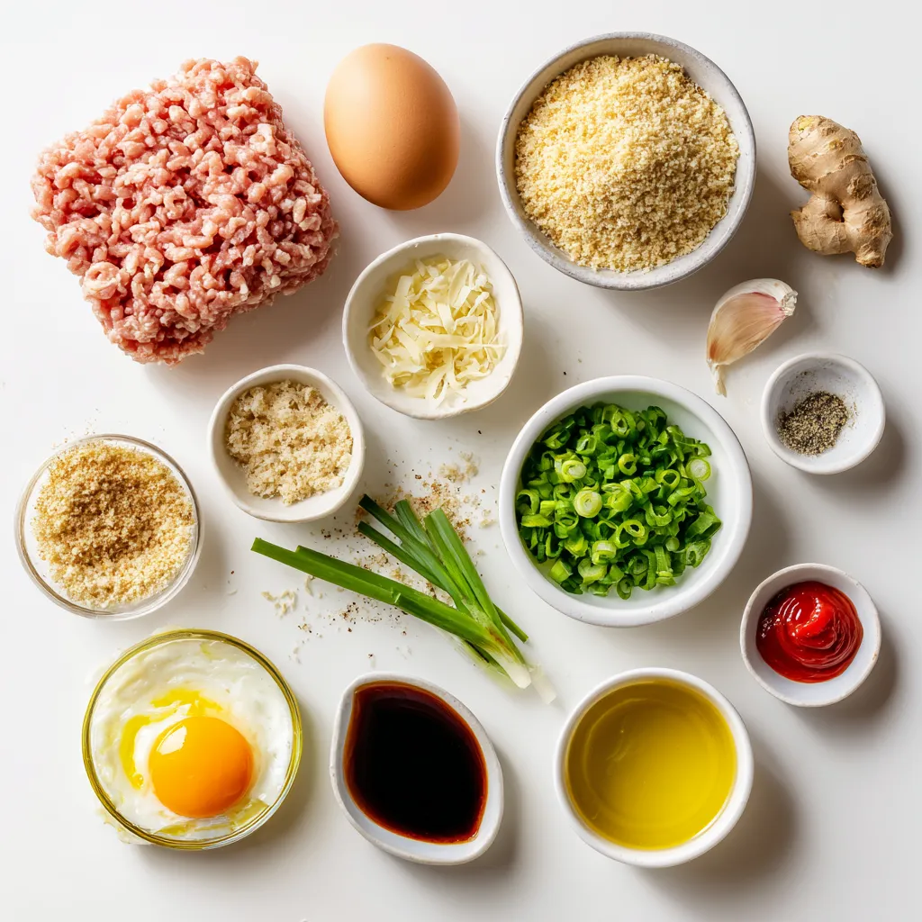 Green onions give a fresh taste. Garlic and ginger add depth and warmth. Don’t forget the egg; it helps hold everything together. Finally, a bit of salt and black pepper adds just the right seasoning.