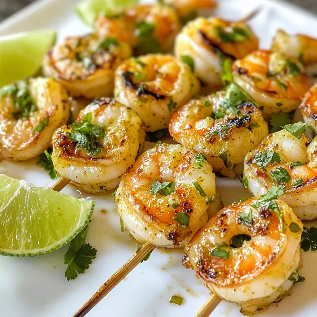 Arrange the shrimp skewers on a platter and drizzle some extra lime juice over them. Serve with a side of grilled vegetables or a fresh salad for a vibrant meal.