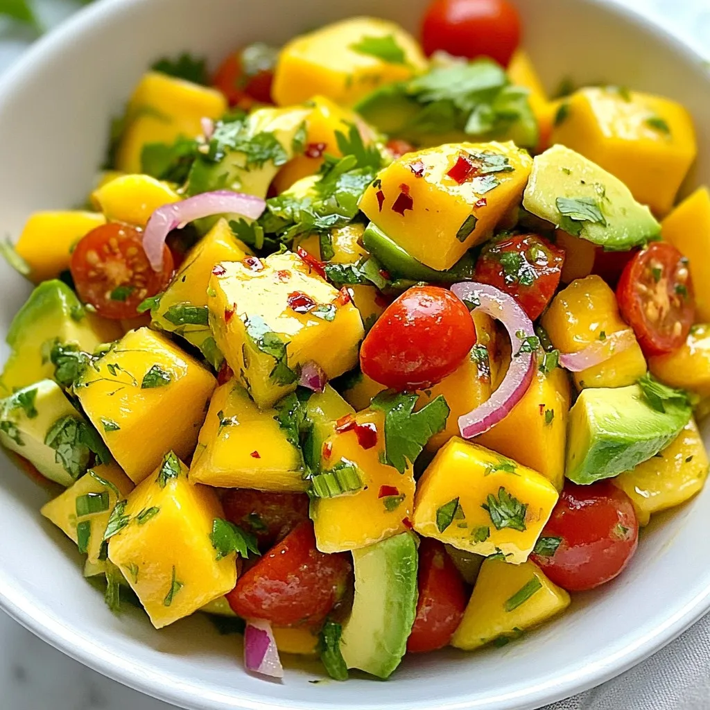 A refreshing salad featuring ripe mangoes and avocados, perfect for a tropical twist.