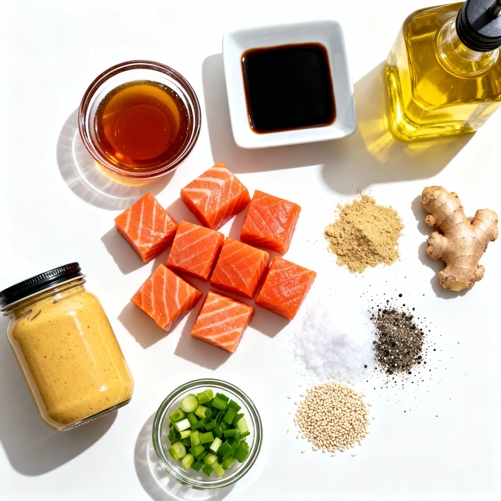 - 1 lb salmon fillet, skinless and boneless, cut into bite-sized cubes