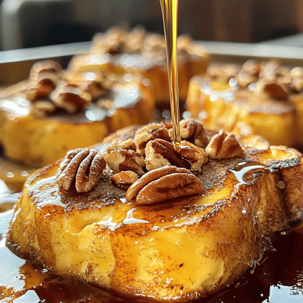 To make Maple Pecan Overnight French Toast, you need some simple and tasty items. Here’s the list of ingredients: - 1 loaf of challah bread, sliced - 4 large eggs - 1 cup whole milk - 1 cup heavy cream - 1/2 cup maple syrup - 1 teaspoon vanilla extract - 1 teaspoon ground cinnamon - 1/4 teaspoon nutmeg - 1 cup pecans, roughly chopped - A pinch of salt Each ingredient plays a key role. The challah bread gives a soft and sweet base. Eggs, milk, and cream create a rich custard. Maple syrup adds a sweet touch. Vanilla extract and spices like cinnamon and nutmeg bring warmth and flavor. Finally, the pecans add a crunchy texture. This mix makes a perfect dish, ready to impress! Start by grabbing a big bowl. In this bowl, whisk together 4 large eggs, 1 cup of whole milk, and 1 cup of heavy cream. Mix them until they blend well. Next, add in 1/2 cup of maple syrup and 1 teaspoon of vanilla extract. These will give your French toast a sweet flavor. Then, sprinkle in 1 teaspoon of ground cinnamon, 1/4 teaspoon of nutmeg, and a pinch of salt. Whisk everything together until it looks smooth. The spices add warmth, making this dish cozy and inviting. Now, take your loaf of challah bread and slice it into thick pieces. Arrange the slices in a greased 9x13 inch baking dish. Overlap them slightly for a nice look. Once the bread is in place, pour the egg mixture evenly over the slices. Make sure each piece gets soaked well. Next, sprinkle 1 cup of roughly chopped pecans on top. Press them gently into the mixture. This step adds a nice crunch and flavor to the dish. Cover your baking dish with plastic wrap and place it in the refrigerator. Let it chill overnight or for at least 4 hours. This helps the bread soak up all the yummy flavors. The next morning, preheat your oven to 350°F (175°C). Take the dish out of the fridge. Let it sit at room temperature for about 15 minutes. This helps it bake evenly. Bake the French toast uncovered for 40 to 45 minutes. Look for a golden-brown top and a set center. Once done, let it cool for a few minutes before slicing. Enjoy this warm, tasty treat! To ensure the best texture for your Maple Pecan Overnight French Toast, follow these tips. First, soak the bread for at least four hours. Overnight soaking gives the bread time to absorb the egg mixture fully. If you can, let it soak for 12 hours. This way, you’ll get a soft, creamy center. When baking, preheat your oven to 350°F (175°C). Bake it uncovered for 40 to 45 minutes. This allows the top to turn golden brown. Keep an eye on it during the last few minutes. You want a crisp top while the inside stays moist. Now, let’s talk about serving. I love to top my French toast with extra maple syrup and whipped cream. Fresh berries also add a burst of flavor and color. You can even sprinkle some powdered sugar on top for a sweet touch. Pair your French toast with a cup of hot coffee or a refreshing glass of orange juice. The flavors mix well and make breakfast feel special. Try different drinks, like hot chocolate or herbal tea, to change things up. Making this dish ahead is easy. If you have leftovers, store them in an airtight container in the fridge. They will last for about three days. To reheat, place pieces in the oven at 350°F (175°C) for 10-15 minutes. You can also microwave them for a faster option. Just cover the French toast with a damp paper towel to keep it moist. Enjoy your delicious breakfast anytime! {{image_2}} You can easily make this dish nut-free. Start by using a different type of bread. You can use brioche or sourdough for a tasty change. These breads soak up the mix well and offer a nice texture. If you want to skip the pecans, simply omit them. You can also use seeds like sunflower seeds for a little crunch. Adding fruits or extracts can boost flavor. Fresh berries or sliced bananas work well in this dish. You can also mix in some vanilla or almond extract for a twist. For seasonal fun, try adding pumpkin spice during fall. It adds warmth and a festive touch to your meal. If you need gluten-free options, choose gluten-free bread. Many brands offer great flavors and textures. For dairy-free substitutions, use almond or oat milk instead of whole milk and cream. You can also replace the eggs with flaxseed meal mixed with water to keep the dish tasty and suitable for everyone. You can keep Maple Pecan Overnight French Toast in the fridge for up to three days. To store it properly, use an airtight container. This helps keep the flavors fresh. If you have leftovers, make sure to cut them into portions. Then, place them in the container. This way, you can grab a piece easily. You can freeze this dish either before or after baking. If you freeze it before baking, cover the dish tightly with plastic wrap. This keeps it from getting freezer burn. When you're ready to bake, thaw it in the fridge overnight and bake as usual. If you choose to freeze it after baking, let it cool completely first. Wrap individual pieces in plastic wrap, then place them in a freezer-safe bag. When you want to enjoy a piece, thaw in the fridge. Reheat in the oven at 350°F (175°C) for about 15-20 minutes. This warms it through perfectly. Yes, you can make this dish ahead of time. In fact, it’s perfect for that! You should prepare it the night before and let it soak in the fridge. This helps the bread absorb all the tasty flavors. Just cover it well with plastic wrap and refrigerate. I recommend using challah bread for this recipe. Its soft texture soaks up the egg mixture well. You can also try brioche or French bread if you want. These types give a rich and fluffy result. To make this dish gluten-free, swap the challah bread for gluten-free bread. There are many good options available now. Just make sure to check the labels for gluten-free certification. The rest of the recipe stays the same. Yes, you can use different nuts if you like. Walnuts and almonds are great choices. Just chop them roughly and sprinkle them on to