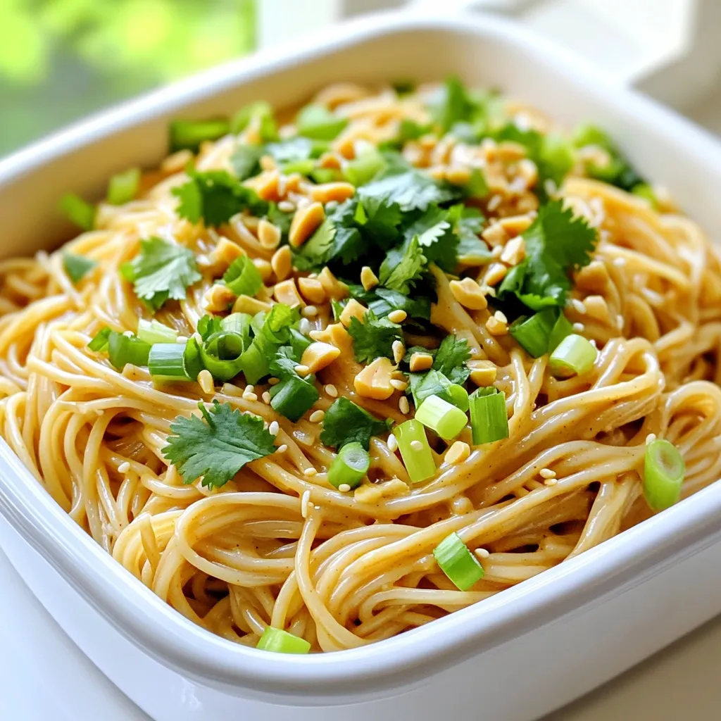 To save time, soak the rice noodles while you prep the sauce. This can cut down on cooking time. Use a whisk to mix the sauce quickly. If you have a jar of peanut sauce, you can use that instead. It saves even more time. Pre-chop your green onions and cilantro ahead of time. Keep them in the fridge for quick use.