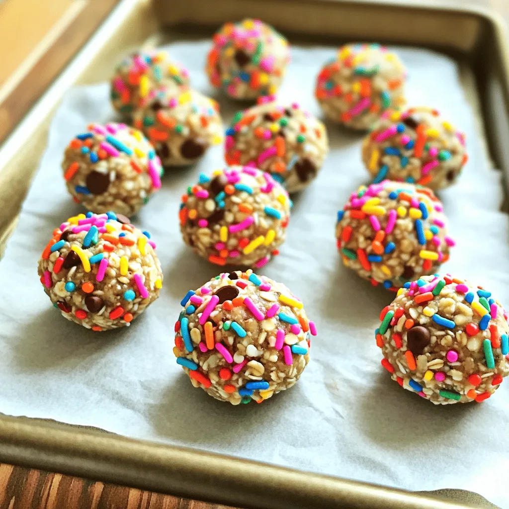 The maple syrup or honey adds sweetness, while mini chocolate chips bring a fun twist. Rainbow sprinkles add color and joy, making these bites special for any birthday. The vanilla extract gives a lovely aroma, and the salt balances the sweetness.