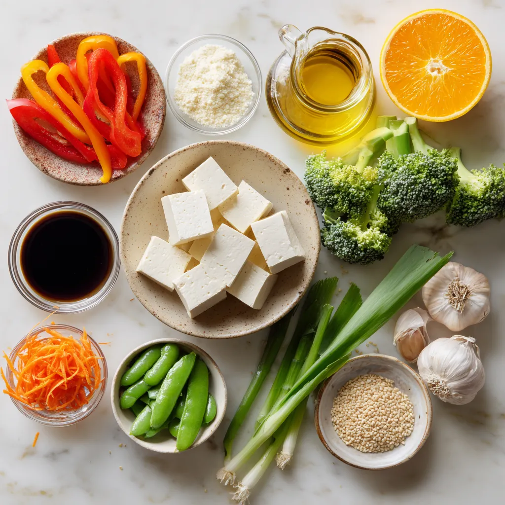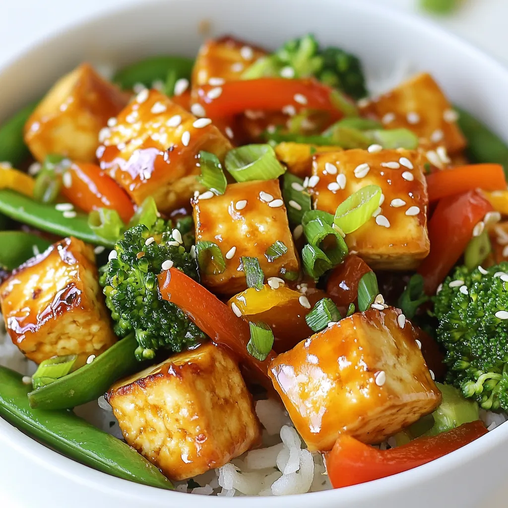 - 1 block (14 oz) firm tofu, drained and cubed - 1 cup broccoli florets - 1 bell pepper (red or orange), sliced - 1 cup snap peas, trimmed - 2 carrots, thinly sliced - 3 green onions, chopped - 3 cloves garlic, minced - 2 tablespoons ginger, finely grated - 1/4 cup fresh orange juice - Zest of 1 orange - 2 tablespoons soy sauce - 1 tablespoon cornstarch, mixed with 2 tablespoons water - 2 tablespoons sesame oil - 1 tablespoon olive oil - Salt and black pepper to taste I love starting with firm tofu for this dish. It holds its shape well. You need to drain it first. Press it to remove extra water. This helps it absorb all the tasty flavors later. The veggies add color and crunch. I like using broccoli, bell pepper, snap peas, and carrots. They not only taste great together, but they also look good on the plate. Fresh orange juice and zest give this dish its bright and zesty flavor. - Sesame seeds for garnish (optional) Sesame seeds add a nice touch. They give a little crunch and look pretty too. You can sprinkle them on top before serving. - Sesame oil - Olive oil I use a mix of sesame oil and olive oil. Sesame oil brings a rich, nutty taste. Olive oil is great for cooking the tofu. This mix helps the dish shine with flavor. {{ingredient_image_1}} Start by pressing the tofu. This step helps remove extra moisture. Wrap the tofu in a clean kitchen towel. Place a heavy object on top. Let it sit for about 15 to 20 minutes. After pressing, cut the tofu into 1-inch cubes. This size helps it cook evenly. In a large skillet or wok, heat olive oil over medium-high heat. Add the cubed tofu once the oil is hot. Season the tofu with a pinch of salt. Sauté the tofu until it turns golden brown on all sides. This should take about 6 to 8 minutes. Once done, remove the tofu from the skillet and set it aside. Using the same skillet, add sesame oil. Next, add minced garlic and grated ginger. Sauté this mixture for about 30 seconds until it smells great. Now, add the broccoli, bell pepper, snap peas, and sliced carrots. Stir-fry these vegetables for about 4 to 5 minutes. The goal is to keep them vibrant and crisp. In a small bowl, whisk together the fresh orange juice, orange zest, and soy sauce. This mixture is key to your glaze. Pour this orange mix over the cooked vegetables in the skillet. It adds a bright flavor to the dish. Return the cooked tofu to the skillet. Mix everything well to combine. Bring the mixture to a gentle simmer. Stir in the cornstarch slurry to thicken the sauce. Cook for another 2 to 3 minutes. The sauce should become glossy and coat the tofu and vegetables. Taste and adjust seasoning with salt and black pepper if needed. Finally, sprinkle chopped green onions over the stir fry for added crunch and flavor. Pressing tofu helps it absorb flavors. To do this, wrap the tofu in a clean kitchen towel. Place a heavy object on top, like a cast iron skillet. Let it sit for 15 to 20 minutes. This step makes a big difference in taste and texture. For a great stir-fry, use firm tofu. Cut it into 1-inch cubes for even cooking. Sauté the tofu in olive oil until golden brown. This takes about 6 to 8 minutes. Cook the vegetables until they are bright and crisp. Aim for 4 to 5 minutes of stir-frying. This keeps them fresh and tasty. To boost flavor, use fresh ingredients like garlic and ginger. They add a nice zing to your dish. When adding the orange juice and zest, whisk them well for even flavor. Use soy sauce for a salty depth. Adjust seasoning with salt and black pepper to your taste. For extra crunch, top your dish with sesame seeds and chopped green onions. Pro Tips Press Tofu Well: Make sure to press the tofu for at least 15-20 minutes to remove excess moisture, allowing it to absorb more flavors during cooking. Use Fresh Ingredients: Opt for fresh vegetables and juice for the best flavor. Fresh orange juice enhances the stir fry's brightness. Adjust the Sauce: Feel free to tweak the soy sauce and orange juice ratio to suit your taste preferences; a little more soy sauce can add a nice umami flavor. Garnish for Flavor: Don’t skip the sesame seeds and green onions as garnishes; they add a delightful crunch and visual appeal to the dish. {{image_2}} If you want a different protein, consider chickpeas. They add a nice texture. Tempeh is another great choice. It has a nutty flavor and holds up well in stir-fries. For a meat option, use chicken or shrimp. Just remember to adjust the cooking time. These proteins can cook faster than tofu. You can swap out any veggies in this dish. Cauliflower works well in place of broccoli. Zucchini adds a nice crunch. If you like spice, try adding sliced jalapeños. You can also add mushrooms for an earthy taste. Just make sure to cut them into small pieces for even cooking. To make this dish gluten-free, use tamari instead of soy sauce. Tamari has a similar taste but is safe for gluten-free diets. Check your cornstarch to ensure it's gluten-free as well. Most brands are, but it’s always good to verify. Serve with rice that’s marked gluten-free, like jasmine or basmati. To keep your Orange Glazed Tofu Stir Fry fresh, store it in an airtight container. Let it cool to room temperature first. This prevents moisture buildup. You can store it in the fridge for up to three days. If you want to keep it longer, consider freezing. When it's time to enjoy your leftovers, reheat them gently. You can use a skillet over medium heat. Add a splash of water or oil to keep it moist. Stir often for even heating. You can also use the microwave. Place it in a microwave-safe dish. Heat for 1-2 minutes, stirring halfway through. Make sure it’s heated all the way through. Freezing is a great option for long-term storage. Place the stir fry in a freezer-safe bag or container. Remove as much air as possible to prevent freezer burn. It can last for up to three months in the freezer. When ready to eat, thaw in the fridge overnight. Reheat it without cooking again. This keeps t