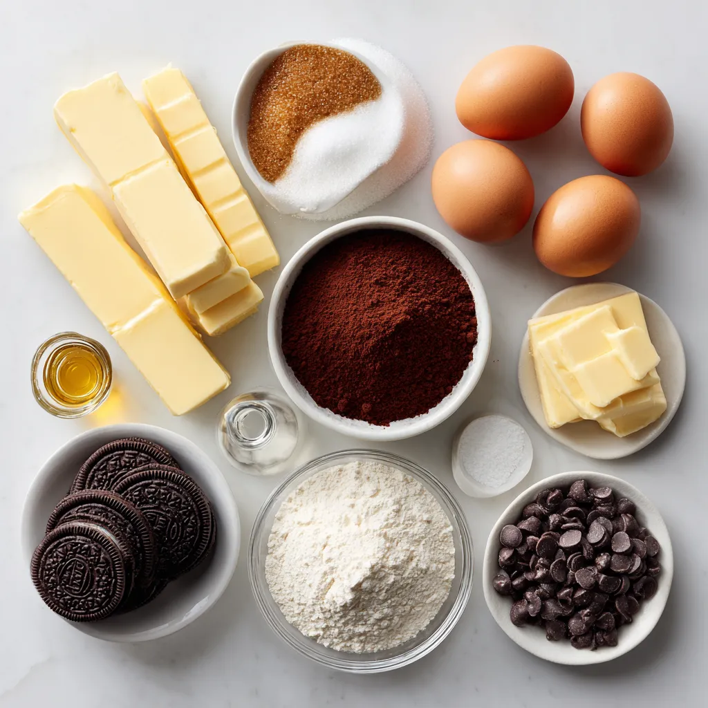 These ingredients bring a rich flavor and texture to your brownies. The butter adds moisture, while sugars provide sweetness. The cocoa powder gives a deep chocolate taste, and the Oreos add a fun twist. If you want even more chocolate, toss in some chocolate chips.