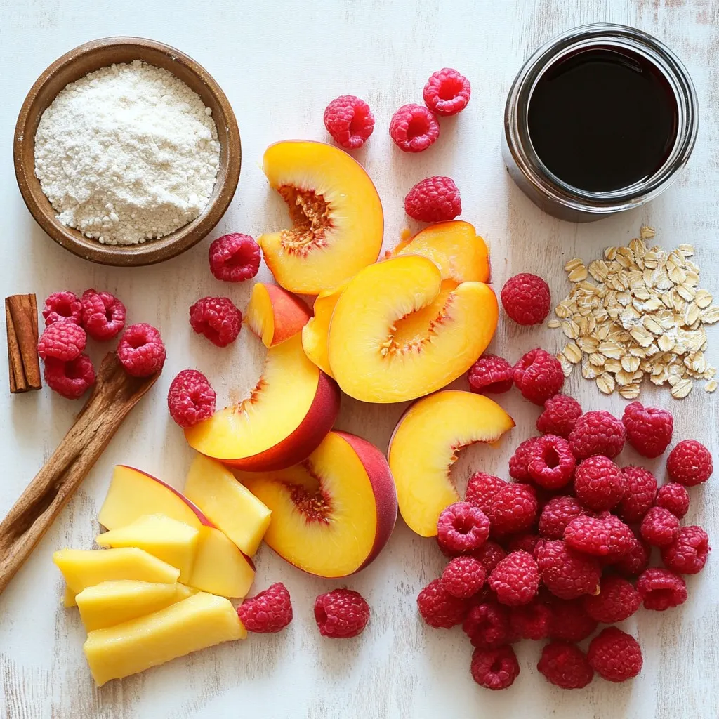For this tasty Peach Raspberry Crumble, gather these simple ingredients: