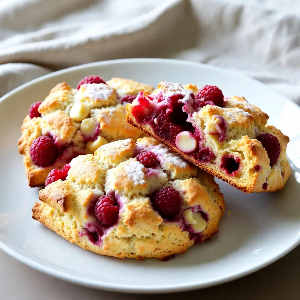 Delicious scones filled with fresh raspberries and white chocolate, perfect for breakfast or a snack.