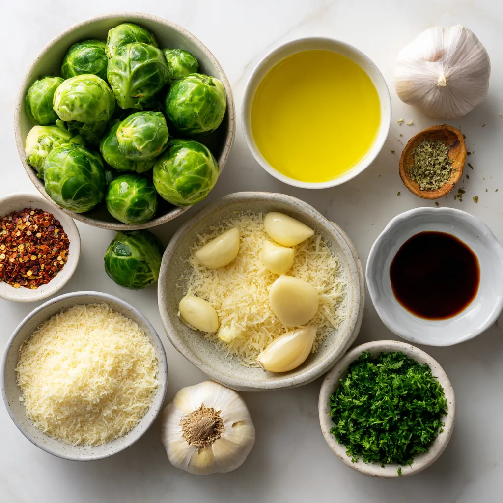 These ingredients come together to create a flavorful dish. The Brussels sprouts give a nutty taste, while garlic adds a rich aroma. Olive oil helps them roast nicely. Salt and pepper bring out the best flavors. If you like heat, add red pepper flakes. Parmesan cheese adds creaminess and depth. Finally, balsamic vinegar gives a sweet, tangy finish, while fresh parsley brightens the dish.