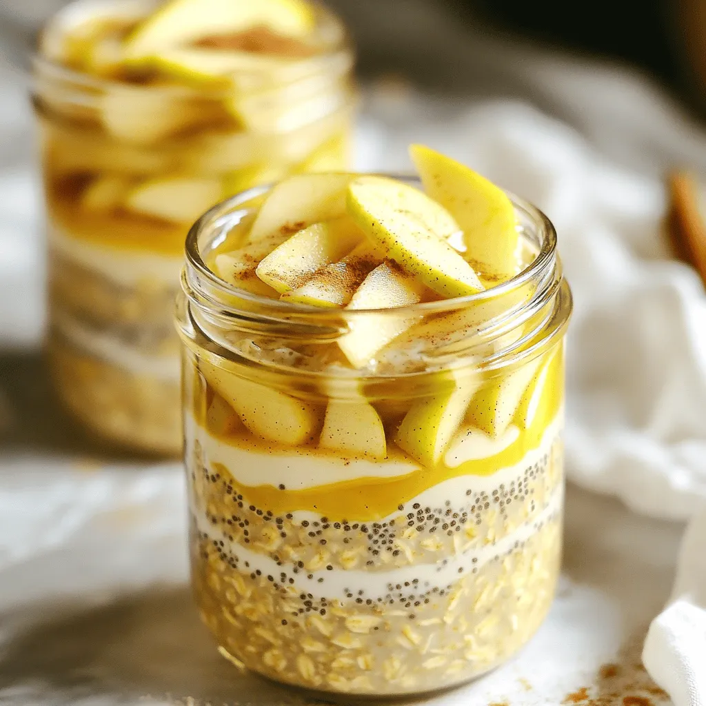 Apple pie overnight oats are easy and tasty. You need rolled oats, almond milk, and fresh apples. Mix these with sweeteners and spices for great flavor. Remember to customize with optional ingredients like chia seeds and walnuts.