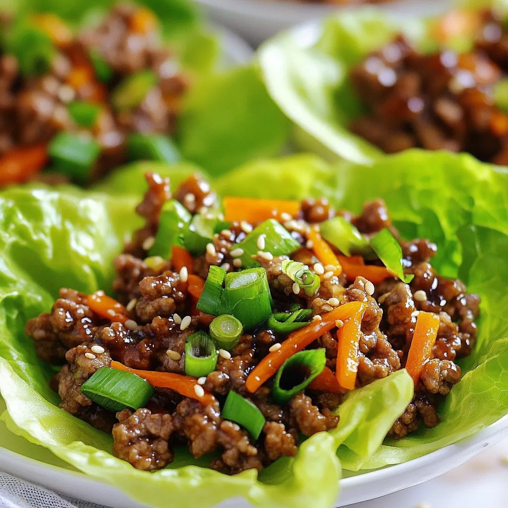 - 1 lb ground beef - 2 tablespoons sesame oil - 2 cloves garlic, minced - 1 tablespoon fresh ginger, grated - 1/4 cup soy sauce (or tamari for gluten-free) - 2 teaspoons rice vinegar - 1 tablespoon honey - 1/4 cup green onions, chopped - 1 small carrot, finely grated - 1/2 red bell pepper, finely diced - 1 tablespoon sesame seeds - 1 head of butter or romaine lettuce, leaves separated These ingredients make the base of the dish. The ground beef gives a hearty flavor. The sesame oil adds depth, while garlic and ginger bring freshness. Soy sauce and honey balance the flavors with saltiness and sweetness. The veggies add crunch and color. - Sriracha or chili flakes You can add Sriracha or chili flakes for a spicy kick. This heat enhances the dish's depth. Adjust the amount based on your taste. - Ground beef can be swapped for turkey or tofu. - Tamari can replace soy sauce for a gluten-free option. - Use any crunchy veggies like cucumber or bell pepper instead of carrots. Substituting ingredients keeps the dish fresh. It allows you to try new flavors while still enjoying the core recipe. {{ingredient_image_1}} First, heat 2 tablespoons of sesame oil in a large skillet over medium heat. Add 2 cloves of minced garlic and 1 tablespoon of grated ginger. Stir for about 1 minute until you can smell the ginger and garlic. Next, add 1 pound of ground beef to the skillet. Break up the meat using a spatula. Cook until the beef turns brown and is no longer pink. This should take about 5 to 7 minutes. While the beef cooks, grab a small bowl. In that bowl, mix together 1/4 cup of soy sauce, 2 teaspoons of rice vinegar, and 1 tablespoon of honey. This sauce adds great flavor to your beef. Once the beef is browned, pour the sauce over it. Stir well to coat the beef evenly. Let it cook for another 2 to 3 minutes. This helps the sauce thicken a bit. Next, stir in 1/4 cup of chopped green onions, 1 small finely grated carrot, and 1/2 of a diced red bell pepper. Cook these veggies for 2 to 3 minutes until they begin to soften. Once done, remove the skillet from heat and sprinkle 1 tablespoon of sesame seeds over the mixture. To serve, take leaves from a head of butter or romaine lettuce. Spoon the beef mixture into the leaves. If you like heat, add Sriracha or chili flakes. Roll them up like wraps, and you’re all set to enjoy! To get the best texture in your sesame ginger beef, use high heat. This helps brown the beef quickly. Break the beef apart well while it cooks. This keeps the meat tender and mixes well with the veggies. Stir often to keep it from sticking. For a crunch, add the carrots and bell peppers just before the beef is done. This keeps them crisp and fresh. For a fun look, use big, leafy butter or romaine lettuce. Arrange the wraps on a platter. Drizzle a bit of extra sauce over the top. Sprinkle sesame seeds for a nice touch. You can also add sliced green onions. Serve with a small bowl of Sriracha or chili flakes on the side for guests who want some heat. One mistake is cooking the beef too long. This makes it dry and tough. Watch the heat and don’t overcrowd the pan. Another mistake is not using enough sauce. The sauce adds flavor and moisture. Lastly, don’t skip the veggies. They add crunch and color to your wraps. Pro Tips Use Fresh Ingredients: Fresh garlic and ginger will provide the best flavor, so opt for fresh rather than powdered or jarred versions. Customize Your Heat: Adjust the amount of Sriracha or chili flakes based on your heat preference. Start with a small amount and add more if desired. Try Different Greens: While lettuce is traditional, you can experiment with other greens like collard greens or Swiss chard for a unique wrap experience. Meal Prep Friendly: You can prepare the beef mixture ahead of time and store it in the fridge. Just reheat before serving in the lettuce wraps. {{image_2}} You can swap ground beef with other proteins. Ground turkey makes a leaner option. It has a mild flavor, which soaks up the sauce well. For a plant-based choice, try crumbled tofu. Press the tofu to remove excess water, then cook it like the beef. Use the same spices and sauces to keep the taste consistent. To change the heat level, adjust the Sriracha. If you like mild flavors, use less or skip it. For more heat, add chili flakes while cooking. You can also mix in fresh chopped chili peppers. This adds both spice and color to your wraps. Feel free to get creative with veggies. Add bell peppers for crunch, or try mushrooms for a savory taste. Shredded cabbage can give more texture. You could also use snow peas for a fresh bite. The key is to mix colors and textures for a fun and tasty wrap. To keep your sesame ginger beef fresh, store it in an airtight container. Let the beef cool first. Place the beef in the fridge within two hours after cooking. It will stay good for up to three days. If you have leftover lettuce leaves, keep them separate. Store them in a damp paper towel inside a sealed bag. This helps keep them crisp. When you're ready to eat the leftovers, heat the beef gently. Use a skillet over medium heat. Stir often to heat evenly. You can also use a microwave. Place the beef in a microwave-safe bowl. Heat it in short bursts, stirring in between. This helps avoid hot spots. Always check that it’s hot all the way through before serving. If you want to save some for later, freezing works well. Pack the cooled beef in an airtight container or a freezer bag. Squeeze out as much air as possible before sealing. Label the bag with the date. The beef can last up to three months in the freezer. When you’re ready to eat it, thaw it overnight in the fridge. Reheat it as mentioned earlier, and enjoy! Yes, you can make these wraps ahead of time. Cook the beef mixture and let it cool. Store it in the fridge for up to three days. When you are ready to eat, just reheat the beef. Prepare the lettuce leaves fresh right before serving. This keeps them crisp and tasty. Butter lettuce or rom