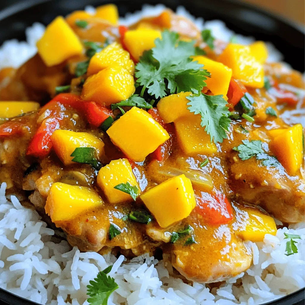 For this savory dish, fresh ingredients matter. Start with chicken thighs. They cook well and stay juicy. Next, choose a ripe mango. A sweet mango makes all the difference. You’ll want a nice, creamy coconut milk. It adds richness to the curry. Red curry paste gives the dish its warm flavor. Chicken broth helps to create a lovely sauce.