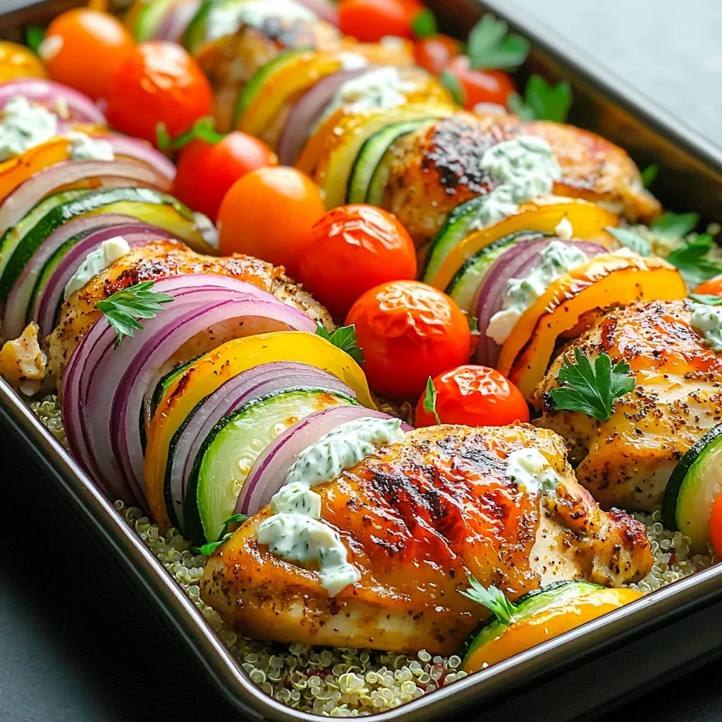 For a fun presentation, use wide bowls. Start with a base of quinoa or brown rice. Then layer on the roasted veggies and chicken. Drizzle tzatziki sauce on top. Add crumbled feta cheese and chopped parsley for color. You can also serve extra tzatziki on the side. A lemon wedge adds a nice touch.