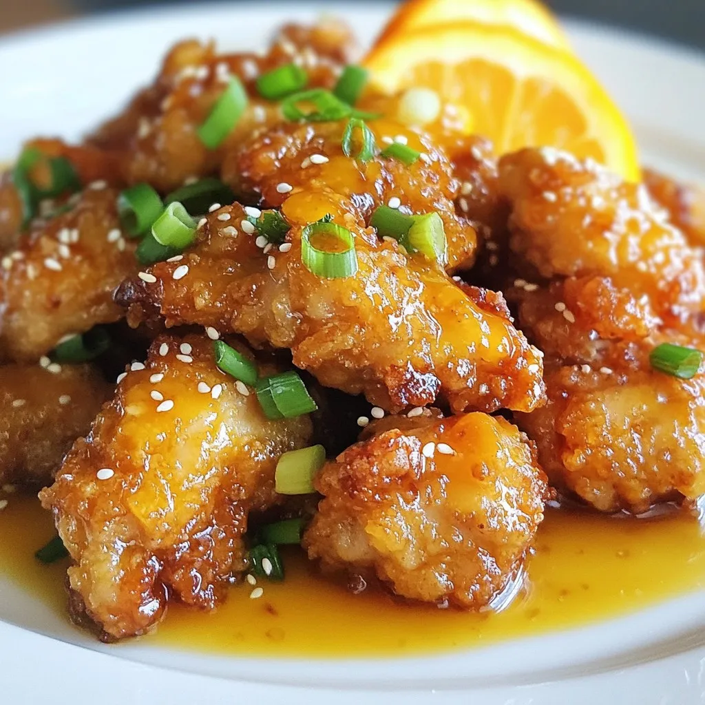 A delicious and crispy chicken dish with a tangy orange sauce.