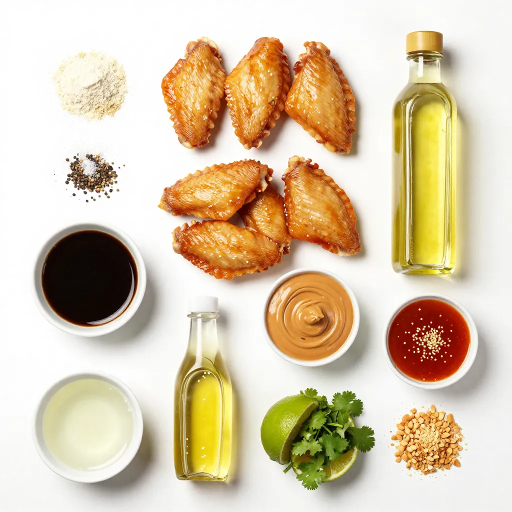 - 2 lbs chicken wings - 1 teaspoon garlic powder - 1 teaspoon ginger powder - Salt and pepper to taste - 1 tablespoon vegetable oil I use chicken wings because they are juicy and perfect for baking. You can choose fresh or frozen wings. Just remember to thaw them if using frozen. - 1/2 cup creamy peanut butter - 1/4 cup soy sauce (low sodium) - 2 tablespoons honey or maple syrup - 1 tablespoon rice vinegar - 1 tablespoon Sriracha sauce (adjust for spice) - 1 tablespoon lime juice - 1 tablespoon sesame oil - 1/4 cup water (to adjust consistency) This sauce is the star of the dish. It has a mix of sweet, salty, and spicy flavors. Adjust the Sriracha if you like it milder or hotter. - Chopped cilantro - Crushed peanuts Garnishes add color and crunch. Cilantro gives freshness, while crushed peanuts add texture. You can skip them, but they really elevate the wings. {{ingredient_image_1}} Start by gathering your chicken wings. Use 2 pounds for this recipe. In a large bowl, mix garlic powder, ginger powder, salt, and pepper. Add 1 tablespoon of vegetable oil to the wings. Toss the wings well so they are fully coated. This will help the seasonings stick and add flavor. Preheat your oven to 425°F (220°C). Line a baking sheet with aluminum foil for easy cleanup. Spread the wings on the baking sheet in a single layer. Bake them for 35-40 minutes. Flip the wings halfway through to ensure they cook evenly. They should become crispy and golden. While the wings bake, make the spicy Thai peanut sauce. In a mixing bowl, combine ½ cup of creamy peanut butter, ¼ cup of low sodium soy sauce, and 2 tablespoons of honey or maple syrup. Add 1 tablespoon of rice vinegar, 1 tablespoon of Sriracha sauce, and 1 tablespoon of lime juice. Mix in 1 tablespoon of sesame oil. Whisk until smooth. If needed, add ¼ cup of water to reach your preferred sauce thickness. Once the wings are done baking, transfer them to a large mixing bowl. Pour the spicy Thai peanut sauce over the wings. Toss the wings gently to ensure every one is coated well. This step is key for flavor. If you want extra flavor, return the coated wings to the oven for 5-10 minutes. This will set the sauce nicely. When ready to serve, place the wings on a platter. Garnish with chopped cilantro and crushed peanuts for a crunchy finish. Enjoy your finger-licking good meal! To get your wings extra crispy, use a few key methods. First, pat the wings dry with paper towels. This removes moisture and helps them crisp. Next, coat them lightly with vegetable oil. This adds flavor and aids in browning. Bake the wings on a wire rack set over a baking sheet. This allows hot air to circulate around the wings, making them crispier. Flip them halfway through cooking for even crispiness. If you want to change the heat, adjust the Sriracha in the sauce. Start with one tablespoon for a good kick. If you prefer it milder, cut back to half a tablespoon. You can also add more honey or maple syrup to balance the heat. For heat lovers, try adding minced fresh chili peppers or a dash of cayenne pepper to the sauce. You can prepare these wings ahead of time. Season the wings and store them in the fridge for up to 24 hours before cooking. You can also make the spicy Thai peanut sauce in advance. Store it in an airtight container in the fridge for up to a week. When ready to serve, simply bake the wings and toss them in the sauce. If you bake them a little longer, they’ll be even tastier! Pro Tips Use Fresh Ingredients: For the best flavor, use fresh garlic and ginger instead of powders. Fresh ingredients can elevate the dish significantly. Adjust the Spice Level: If you prefer milder wings, reduce the amount of Sriracha in the sauce or omit it altogether. You can always serve extra on the side! Marinate for Extra Flavor: For deeper flavor, marinate the wings in the seasoning and a bit of the peanut sauce for a couple of hours or overnight before baking. Experiment with Garnishes: Besides cilantro and crushed peanuts, try adding sliced green onions or sesame seeds for additional texture and flavor. {{image_2}} You can switch up the sauce for new flavors. Try a sweet chili sauce for a milder option. A teriyaki glaze adds a nice touch of sweetness. If you love heat, a hot sauce blend works great too. Experiment with different nut butters for a unique twist. Sunflower seed butter is a tasty nut-free choice. You don’t have to use chicken wings for this recipe. Chicken drumsticks are a great alternative. They have a similar taste and texture. You can also try boneless chicken thighs if you prefer less mess. For a lighter option, use cauliflower wings. They soak up the sauce nicely and taste amazing. You can grill the wings for a smoky flavor. Preheat your grill and cook them for about 20 minutes. Just make sure to flip them to avoid burning. Frying gives you an extra crispy texture. Heat oil to 350°F (175°C) and fry for 8-10 minutes. Both methods are delicious, so choose what you like best! After you enjoy your wings, let them cool down. Place any leftovers in an airtight container. Store them in the fridge. They stay fresh for up to three days. To keep the wings crispy, try to store the sauce separately. To reheat wings, a quick bake works best. Preheat your oven to 350°F (175°C). Spread wings on a baking sheet. Bake for about 10-15 minutes. This method helps keep the wings crispy. You can also use a microwave. Just cover the wings with a damp paper towel. Heat in short bursts of 30 seconds. Check often to avoid overcooking. If you want to save wings for later, freezing is a great option. First, let the wings cool completely. Then, place them on a baking sheet in a single layer. Freeze for about one hour. This way, they won’t stick together. After freezing, transfer them to a freezer bag. Remove as much air as possible. They can stay frozen for up to three months. When ready to eat, thaw in the fridge overnight before reheating. To make wings less spicy, you can adjust th