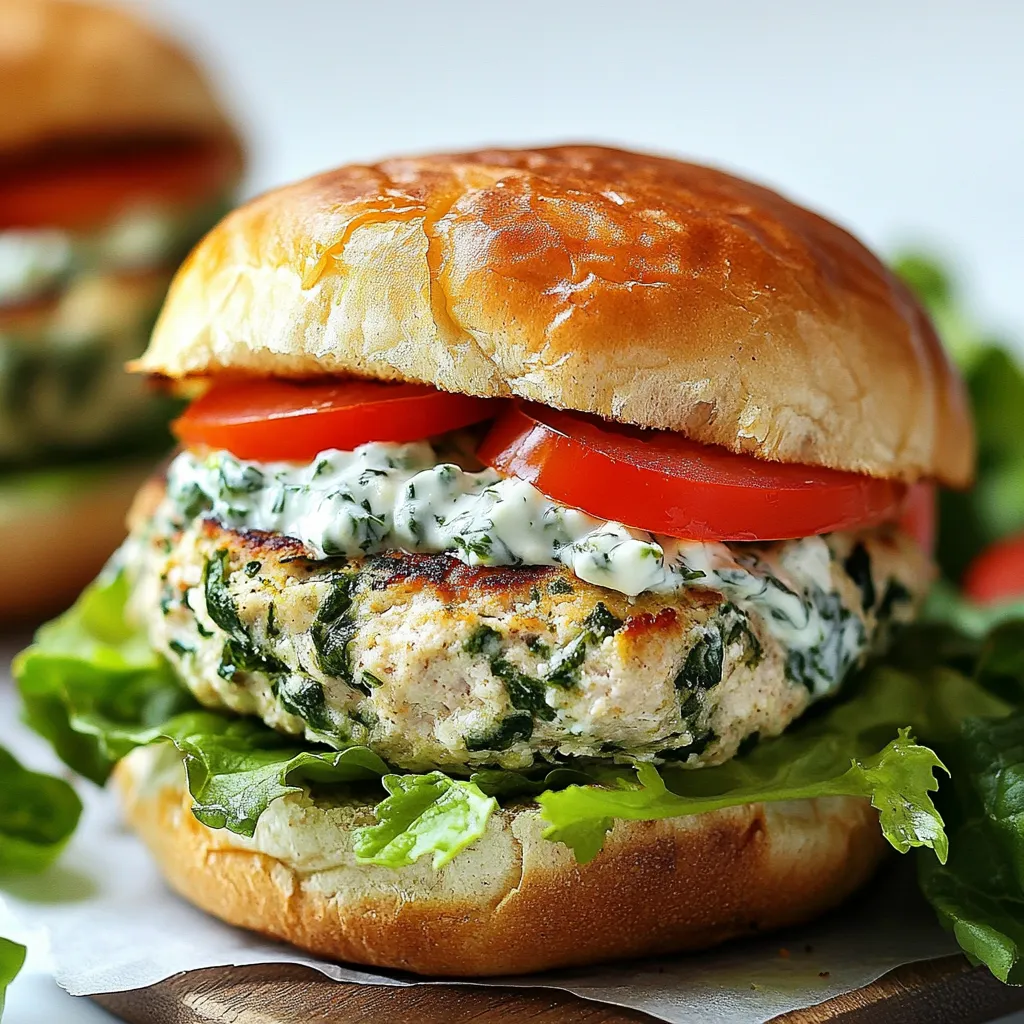 - 1 pound ground turkey - 1 cup fresh spinach, finely chopped - 1/2 cup feta cheese, crumbled - 1/4 cup breadcrumbs - 1/4 cup chopped onion - 2 cloves garlic, minced - 1 teaspoon dried oregano - 1 teaspoon salt - 1/2 teaspoon black pepper - 1 tablespoon olive oil (for grilling) - 4 whole wheat burger buns I love using ground turkey for these burgers. It is lean and tasty. The spinach adds a vibrant color and fresh flavor. Feta cheese gives a nice salty bite. Breadcrumbs help bind the mixture and keep the burgers moist. Onion and garlic bring extra depth to the flavor. Oregano, salt, and pepper finish it off with a classic taste. - Sliced tomatoes - Lettuce - Tzatziki sauce Toppings can make a burger special. I enjoy adding sliced tomatoes for freshness. Crisp lettuce adds a nice crunch. Tzatziki sauce brings a cool and creamy element. You can mix and match based on your taste! - Mixing bowl - Grill or grill pan - Cooking utensils You need a mixing bowl to combine all the ingredients. A grill or grill pan is necessary for cooking the burgers. Cooking utensils like spatulas will help flip the patties easily. Having the right tools makes the process smoother and more fun! {{ingredient_image_1}} - In a large bowl, mix together: - 1 pound ground turkey - 1 cup finely chopped fresh spinach - 1/2 cup crumbled feta cheese - 1/4 cup breadcrumbs - 1/4 cup chopped onion - 2 cloves minced garlic - 1 teaspoon dried oregano - 1 teaspoon salt - 1/2 teaspoon black pepper - Use your hands to mix all the ingredients. Make sure to combine well, but avoid overmixing. - Divide the mixture into four equal portions. Shape each portion into a patty about ¾ inch thick. - Preheat your grill or grill pan over medium-high heat. Drizzle the grill with 1 tablespoon olive oil to prevent sticking. - When the grill is hot, place the patties on it. Cook the patties for about 5-6 minutes on each side. The turkey burgers are done when they reach an internal temperature of 165°F (74°C) and are golden brown. - During the last minute of cooking, toast the whole wheat burger buns on the grill. - To assemble your burgers, place one turkey patty on the bottom half of each bun. - Top each patty with sliced tomatoes, lettuce, and optional tzatziki sauce. - Place the top half of the bun on each burger and serve hot. - Avoid overmixing: Mix the turkey and other ingredients gently. This keeps the burgers tender. Too much mixing makes them tough. - Maintaining moisture: Add breadcrumbs to help hold moisture. Also, use fresh spinach for extra juiciness. - Checking doneness temperature: Use a meat thermometer. Cook the burgers until they reach 165°F (74°C). This ensures they are safe to eat. - Adjusting cooking time for thickness: Make thicker patties? Cook them longer. Thinner patties cook faster. Always check the center for doneness. - Pairing with sides: Fresh salads or sweet potato fries pair well. They add crunch and balance. - Best condiments: Tzatziki sauce adds great flavor. You can also use sliced tomatoes and crisp lettuce for freshness. Pro Tips Keep It Moist: Adding breadcrumbs helps bind the patties and keeps them moist while cooking. You can also add a little Greek yogurt for extra moisture. Don’t Overmix: When combining the ingredients, mix just until everything is incorporated. Overmixing can lead to tough burgers. Use a Meat Thermometer: To ensure safety and perfect doneness, use a meat thermometer to check that the internal temperature reaches 165°F (74°C). Customize Your Toppings: Feel free to experiment with toppings like avocado, red onion, or your favorite sauce to enhance the flavor profile of your burgers. {{image_2}} You can swap ground turkey for ground chicken or beef. Both options work great. Chicken gives a lighter taste, while beef adds richness. If you want a dairy-free burger, try vegan feta or omit cheese. Use mashed avocado for creaminess. To elevate the taste, add spices like cumin or paprika. Fresh herbs like parsley or dill can also boost flavor. Instead of feta, try goat cheese or cheddar. Each cheese adds a unique twist to your burger. You can bake or grill your burgers. Baking requires less oil and is easy. Grill gives that smoky flavor many love. If you have an air fryer, use it! It cooks quickly and keeps burgers juicy. After enjoying your spinach feta turkey burgers, let them cool down. Wrap each burger tightly in plastic wrap. This keeps them fresh and tasty. Use airtight containers for extra protection. Glass or plastic containers work well. Label the containers with the date. Store them in the fridge for up to three days. To freeze the burgers, follow these steps. First, let them cool completely. Then, wrap each burger in plastic wrap. Place the wrapped burgers in a freezer bag. Squeeze out any air before sealing. This helps prevent freezer burn. You can freeze the burgers for up to three months. When you’re ready to eat, take one out and thaw it in the fridge overnight. To reheat your burgers, the best method is to use a skillet. Heat the skillet over medium heat. Place the burger in the skillet for about 4-5 minutes on each side. This keeps them juicy and flavorful. You can also use an oven. Preheat it to 350°F (175°C). Place the burgers on a baking sheet for about 10-15 minutes. This method maintains their texture well. Enjoy your tasty leftovers! How do I know when the turkey burgers are done? You can check the internal temperature. It should reach 165°F (74°C). Use a meat thermometer for best results. The burgers will also turn golden brown on the outside. Can I make the patties ahead of time? Yes, you can make the patties ahead. Shape them and store in the fridge for up to 24 hours. This saves time when you are ready to cook. What can I serve with turkey burgers? You can serve your burgers with a side of sweet potato fries or a fresh salad. Other great options include roasted vegetables or a simple coleslaw. How many calories are in a spinach feta turkey burger? Each bur