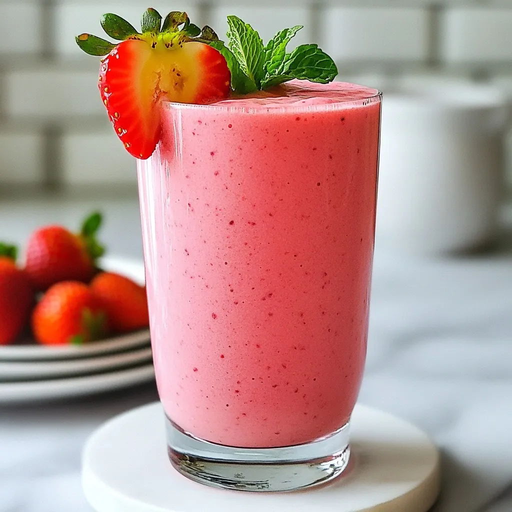 Pour the smoothie into tall, clear glasses to showcase the vibrant colors. Garnish with a few slices of fresh strawberry or banana on the rim, and add a sprig of mint for an extra pop of color. Serve immediately for the freshest flavor!