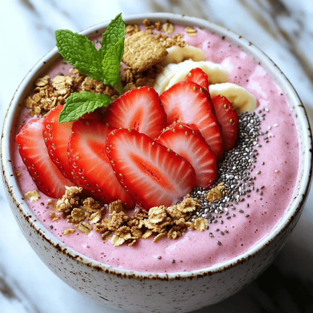 Each ingredient plays a role in creating a creamy and tasty bowl. The strawberries give a sweet and tart flavor. The frozen banana adds thickness and sweetness. Greek yogurt and cream cheese bring a rich, creamy texture. Honey or maple syrup adds a touch of sweetness. Vanilla extract enhances the flavor, while almond milk helps blend everything smoothly.
