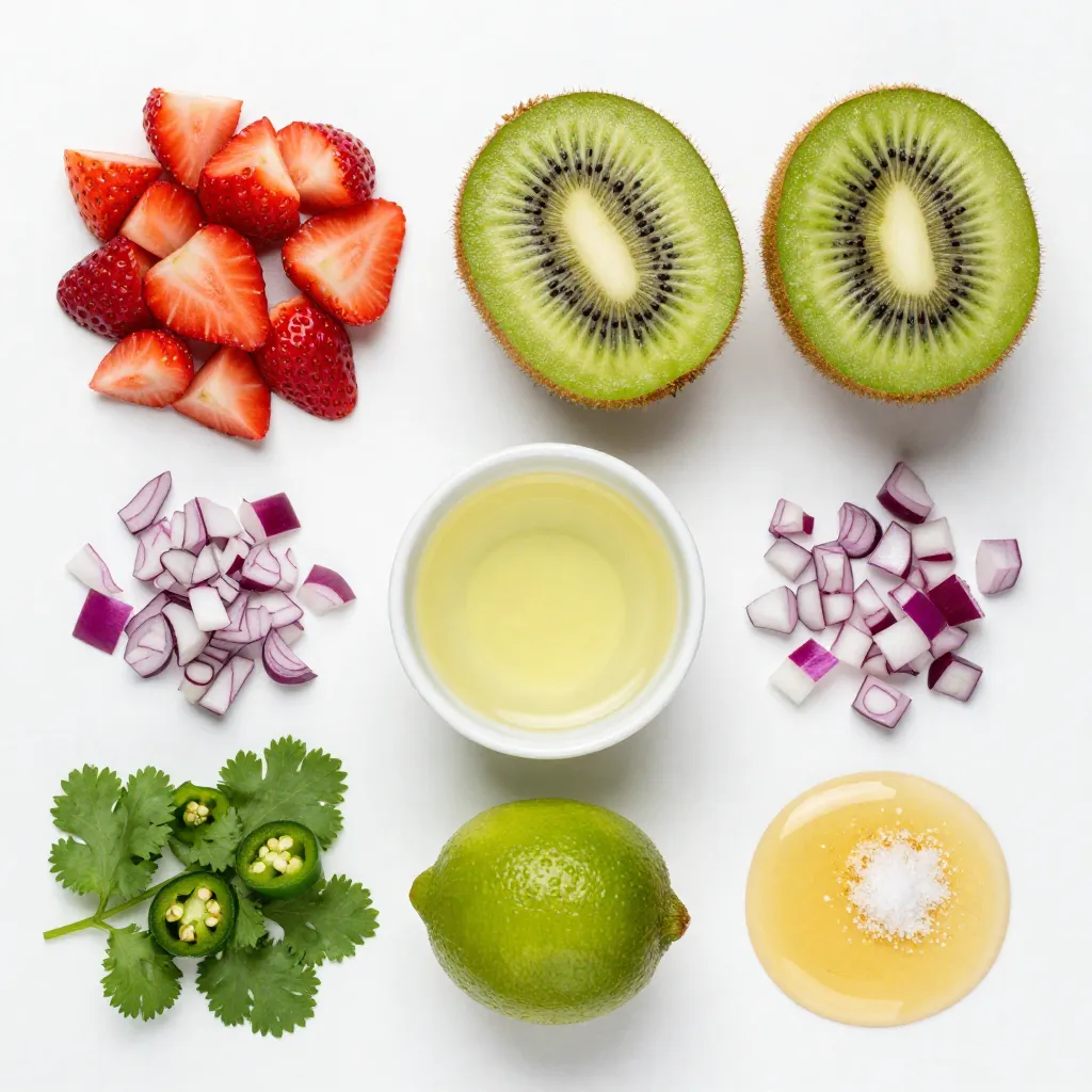 A refreshing and vibrant salsa made with fresh strawberries and kiwis, perfect for summer gatherings.