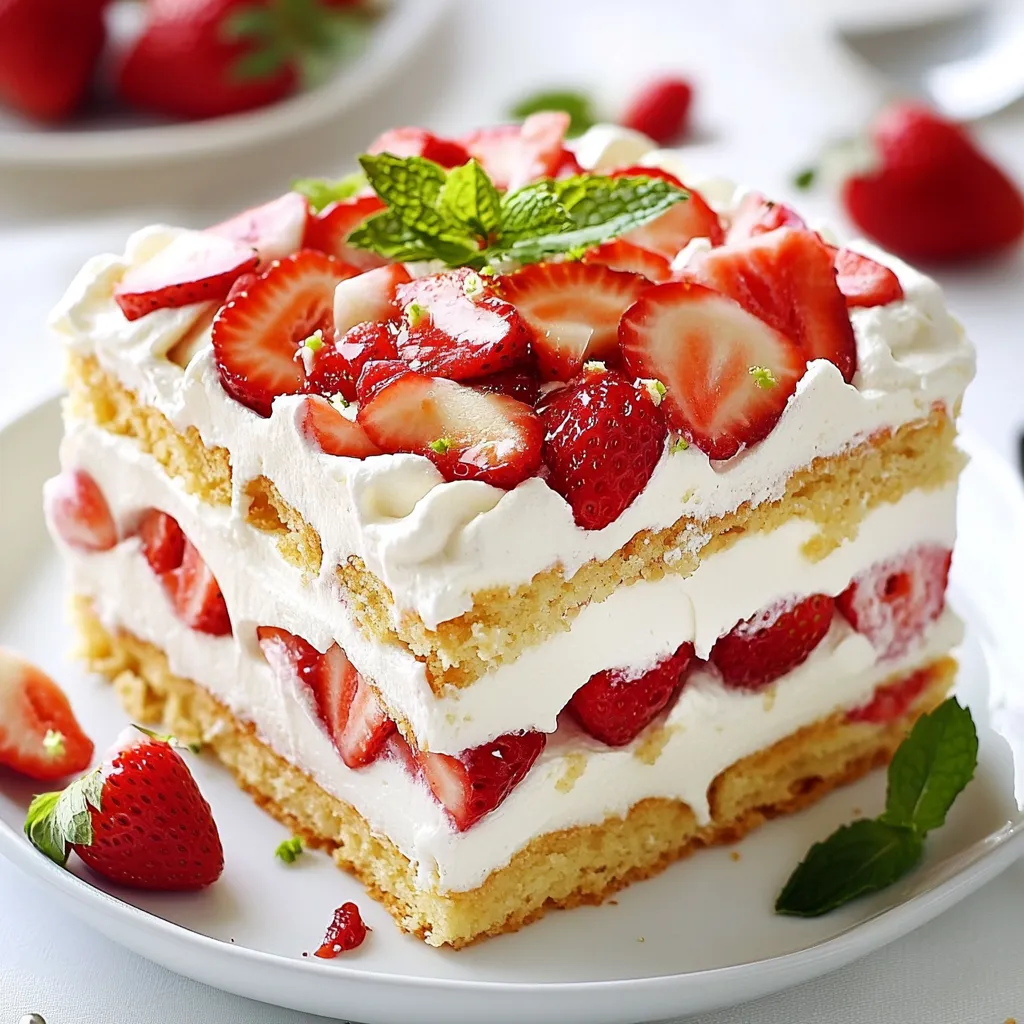 Before serving, garnish the top with any remaining strawberry slices and fresh mint leaves for a pop of color.