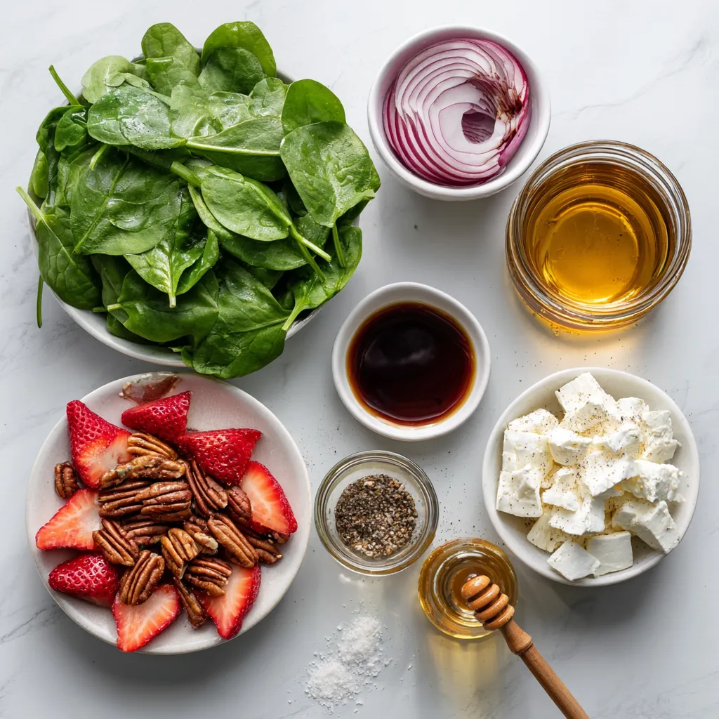 To make a great Strawberry Spinach Salad, start with fresh ingredients. Choose bright green baby spinach. Look for leaves that are crisp and not wilted. For strawberries, select ones that are vibrant red and firm. Smell them; they should have a sweet scent. Always wash your greens and fruit well to remove dirt and pesticides. Store your spinach and berries in the fridge, but use them quickly for the best taste.