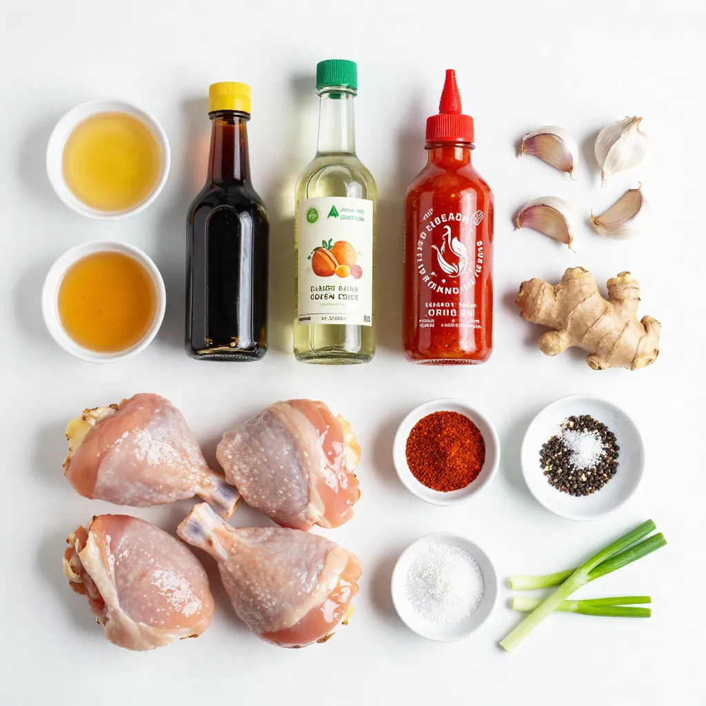 - 4 bone-in, skin-on chicken thighs - 1/4 cup honey - 2 tablespoons soy sauce - 2 tablespoons apple cider vinegar - 1 tablespoon sriracha (adjust to taste) - 3 cloves garlic, minced - 1 tablespoon fresh ginger, grated - 1 teaspoon smoked paprika - 1/2 teaspoon black pepper - 1/2 teaspoon salt - 2 green onions, sliced (for garnish) - Sesame seeds (for garnish) To make these sweet and spicy chicken thighs, you need a few tools. Grab a skillet, an oven-safe dish, and a resealable bag. Using bone-in, skin-on chicken thighs is key. The skin adds flavor and keeps the meat juicy. Bone-in thighs stay moist during cooking. This makes every bite tender and flavorful. You can switch things up if you want. Try boneless thighs, but keep in mind that cooking times change. Enjoy the cooking journey. It's all about finding what you love! {{ingredient_image_1}} - Preheat the oven: Set your oven to 400°F (200°C). This helps cook the chicken evenly. - Mix the marinade ingredients: In a bowl, combine the following: - 1/4 cup honey - 2 tablespoons soy sauce - 2 tablespoons apple cider vinegar - 1 tablespoon sriracha - 3 cloves garlic, minced - 1 tablespoon fresh ginger, grated - 1 teaspoon smoked paprika - 1/2 teaspoon black pepper - 1/2 teaspoon salt Whisk these until smooth and well blended. - Marinate chicken thighs: Place 4 bone-in, skin-on chicken thighs in a large bag. Pour the marinade over them, making sure to coat each piece. Seal the bag and refrigerate for at least 30 minutes. For a deeper flavor, marinate for up to 4 hours. - Searing the chicken thighs: After marinating, take the chicken out and let it sit for 10 minutes. Heat an oven-safe skillet over medium-high heat. Place the chicken skin-side down in the hot skillet. Sear for 5-7 minutes, or until the skin turns crispy and golden. - Baking in the oven: Flip the chicken thighs over in the skillet. Pour the reserved marinade on top. Transfer the skillet to the oven. Bake for 25-30 minutes, or until the internal temperature reaches 165°F (75°C). - Checking for doneness: Use a meat thermometer to check the temperature. This ensures the chicken is safe to eat. - Resting period for the chicken: Once cooked, take the chicken out of the oven. Let it rest for 5-10 minutes. This keeps it juicy. - Presentation and serving suggestions: Serve the chicken on a platter. Drizzle with the pan sauce. Garnish with sliced green onions and sesame seeds. This dish pairs well with steamed jasmine rice or sautéed vegetables for a colorful meal. Marinate your chicken thighs for at least 30 minutes. For the best flavors, go up to 4 hours. This gives the chicken time to soak up the sweet and spicy marinade. You can make the marinade a day ahead. Just store it in the fridge in an airtight container. It saves time and boosts flavor. To get crispy skin, preheat your oven to 400°F (200°C). Sear the chicken skin-side down for 5-7 minutes in a hot skillet. This creates a golden crust. To keep your chicken juicy, avoid overcooking. Cook it until it reaches 165°F (75°C). Let it rest for 5-10 minutes after baking. This helps the juices stay inside. Serve your chicken thighs with steamed jasmine rice or sautéed vegetables. These sides complement the dish well. For a beautiful presentation, drizzle the pan sauce over the chicken. Garnish with sliced green onions and sesame seeds. This adds color and makes your plate look fancy. Pro Tips Marinate for Maximum Flavor: For the best flavor, marinate the chicken thighs for at least 2 hours, or overnight if possible. This allows the flavors to penetrate deeply into the meat. Ensure Crispy Skin: To achieve perfectly crispy skin, make sure to pat the chicken thighs dry with paper towels before searing them in the skillet. Check Internal Temperature: Always use a meat thermometer to check that the chicken reaches an internal temperature of 165°F (75°C) for safe consumption. Rest Before Serving: Let the chicken rest for 5-10 minutes after cooking. This helps the juices redistribute, ensuring juicy and tender meat. {{image_2}} You can change the sweetener in this recipe. Try using maple syrup or agave instead of honey. Both can give a nice flavor twist. You can also switch the hot sauce. Use a different one if you prefer a milder or hotter taste. Grilling the chicken can add a smoky flavor. Just marinate and then cook it on the grill. You can also bake it in the oven, as the recipe suggests. If you prefer, use a slow cooker. Cook the marinated chicken on low for about six hours for tender results. Think about adding different spices. For a Cajun twist, use Cajun seasoning. If you want a Caribbean vibe, add allspice or jerk seasoning. Also, you can tweak the sauce. Adding coconut milk can give it a tropical feel. Each change can transform the dish into something special. To keep your cooked chicken thighs fresh, store them properly. First, let the chicken cool down to room temperature. Then, place the chicken thighs in an airtight container. You can also use a resealable plastic bag. This keeps moisture in and air out. If you plan to eat them later in the week, refrigerate them. If you want to save them for longer, freezing is best. - Refrigerate: Store in the fridge for up to 4 days. - Freeze: For longer storage, freeze for up to 3 months. When you’re ready to enjoy the leftovers, reheating is key. The oven works best for keeping the chicken juicy. Set your oven to 350°F (175°C). Place the chicken in an oven-safe dish. Cover it with foil to keep moisture in. Heat for about 15-20 minutes, or until warmed through. If you’re short on time, the microwave is a quick option. Place the chicken on a microwave-safe plate. Cover it with a damp paper towel to trap steam. Heat in short bursts of 30 seconds. Check often to avoid drying it out. Cooked chicken can last in the fridge for about 4 days. If frozen, it can remain safe for up to 3 months. Always check for signs of spoilage. Look for changes in color or smell. If the chicken fe