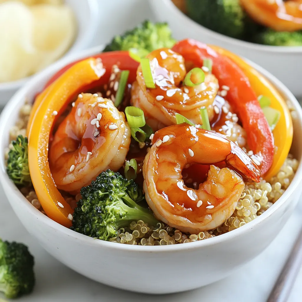 - Presentation Tips: Serve in vibrant bowls, with the shrimp arranged neatly over the quinoa and vegetables. Garnish with additional sesame seeds and a wedge of lime for an extra pop of color.
