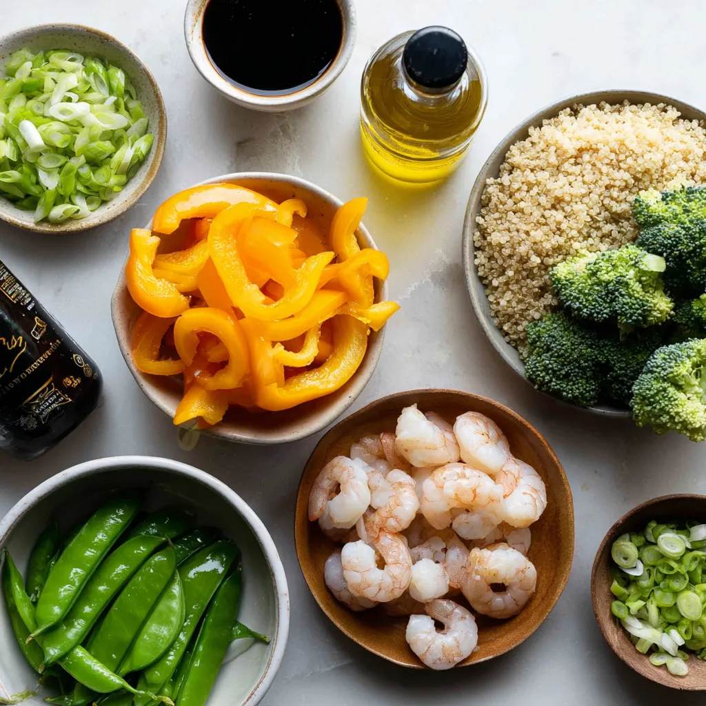 List of Ingredients for Teriyaki Shrimp Quinoa Bowls