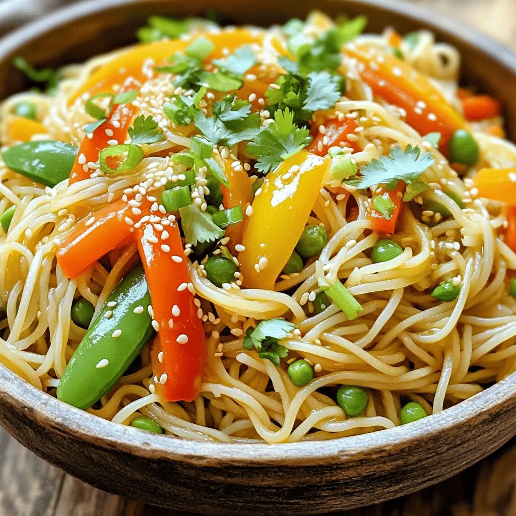 This dish starts with rice noodles. They provide a nice base for the meal. I love using them because they cook fast and absorb flavors well. You will need a bit of sesame oil. This gives a rich, nutty taste. Fresh ginger adds warmth and spice. Minced garlic brings another layer of flavor.